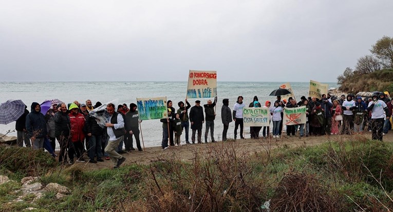Nezadovoljni građani prosvjed su održali pod geslom "Spasimo ušće Cetine", a putem istaknutih transparenta poručili su - "Ne uništavajte ušće", "Čista Cetina čista savjest", "Od pomorskog dobra nama loše", "Sport i rekreacija, a ne betonizacija".