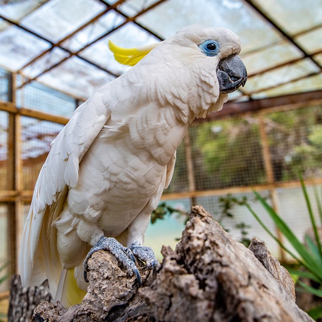 U fazaneriji posjetitelji mogu upoznati Kokija, bijelog kakadua sa žutim čuperkom kojeg je Tito darovao svojoj unuci 1957. godine. Koki je poznat po svojoj sposobnosti govorenja, pozdravljanju i poziranju za fotografije," kažu u NP Brijuni.