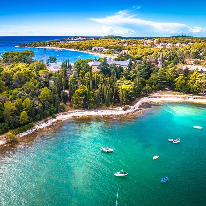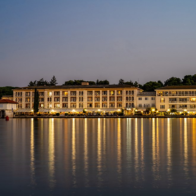 "Na Brijunima danas djeluju hotel Istra, Neptun, sobe Karmen te vile, koji nude smještaj s pogledom na more i park. Na Malom Brijunu je obnovljen hostel San Niccolo, uređen u sklopu projekta Novo ruho Brijuna, namijenjen grupnim posjetima, istraživačima i edukativnim programima.