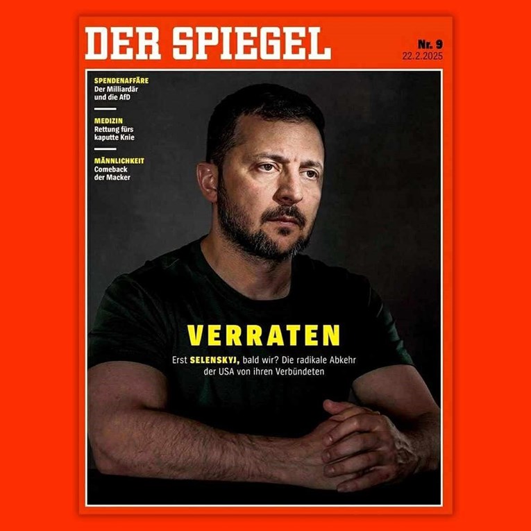 NA NASLOVNICI sutrašnjeg izdanja Der Spiegela nalazit će se fotografija ukrajinskog predsjednika Volodimira Zelenskog uz poruku: "Izdan. Prvo Zelenski, uskoro mi? Radikalno udaljavanje SAD-a od svojih saveznika."