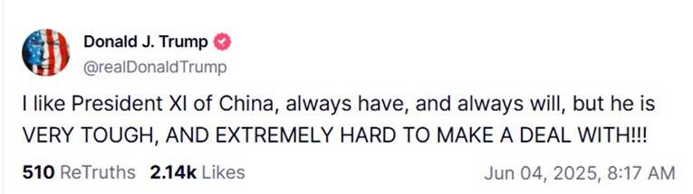 Iako detalji razgovora nisu objavljeni, vjeruje se da su lideri raspravljali o trgovinskim pitanjima, uključujući carine i izvoz rijetkih zemnih minerala. Ovaj razgovor dolazi nakon što su obje zemlje međusobno optužile jedna drugu za kršenje trgovinskog sporazuma postignutog prošlog mjeseca u Ženevi, koji je predviđao privremeno smanjenje carina i obnovu izvoza ključnih sirovina.