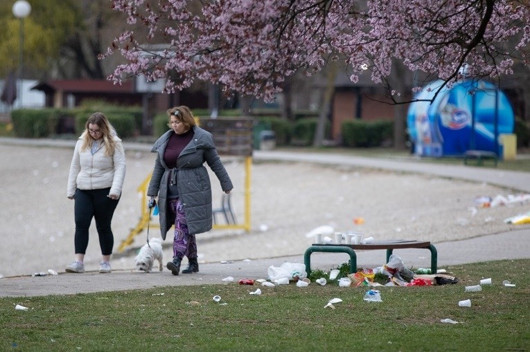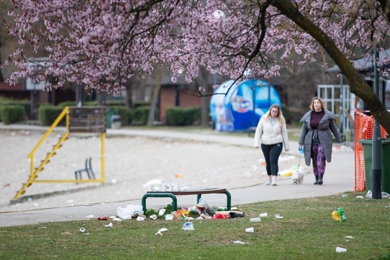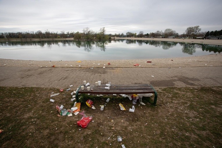 NA ZAGREBAČKOM jezeru Jarun je nakon subotnjeg provoda mladih ostala hrpa smeća.