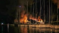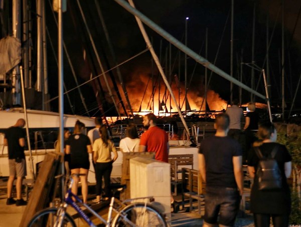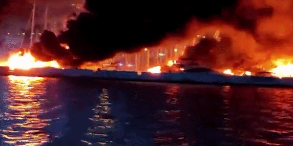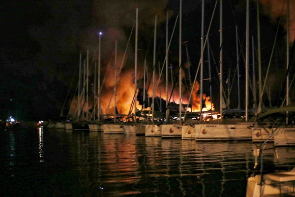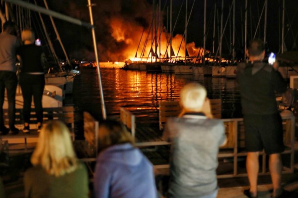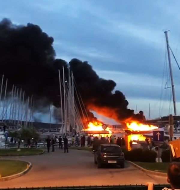 DONOSIMO slike i snimke velikog požara u marini u Kaštel Gomilici. Izgorjelo je pet brodova. Prema prvim informacijama nema ozlijeđenih osoba. Požar je lokaliziran oko 21.40.
