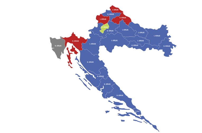 Pratite kretanje rezultata po županijama. Ninčević Lesandrić bez šanse protiv Bobana