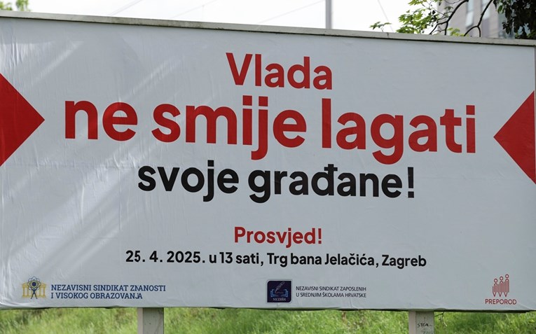 TRI OBRAZOVNA sindikata su najavila kako je prosvjed koji će se održati 25. travnja na Trgu bana Josipa Jelačića u Zagrebu kruna njihovih sindikalnih aktivnosti iz travnja koji će pokazati nezadovoljstvo zaposlenika, poručivši kako Vlada ne smije lagati svojim građanima.