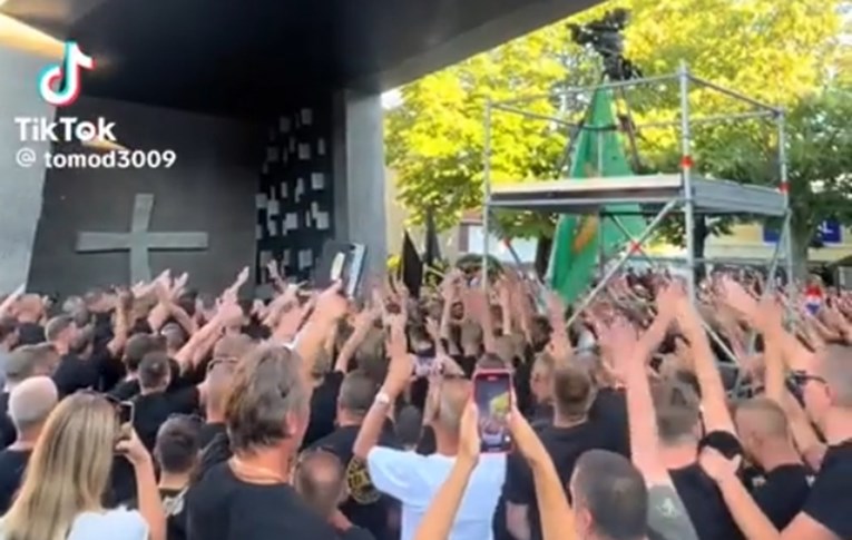 Društvenim mrežama proširila se snimka na kojoj masa ljudi kod Spomenika hrvatske pobjede - Oluja 95 u Kninu salutira desnicom uz poklič "Za dom spremni".