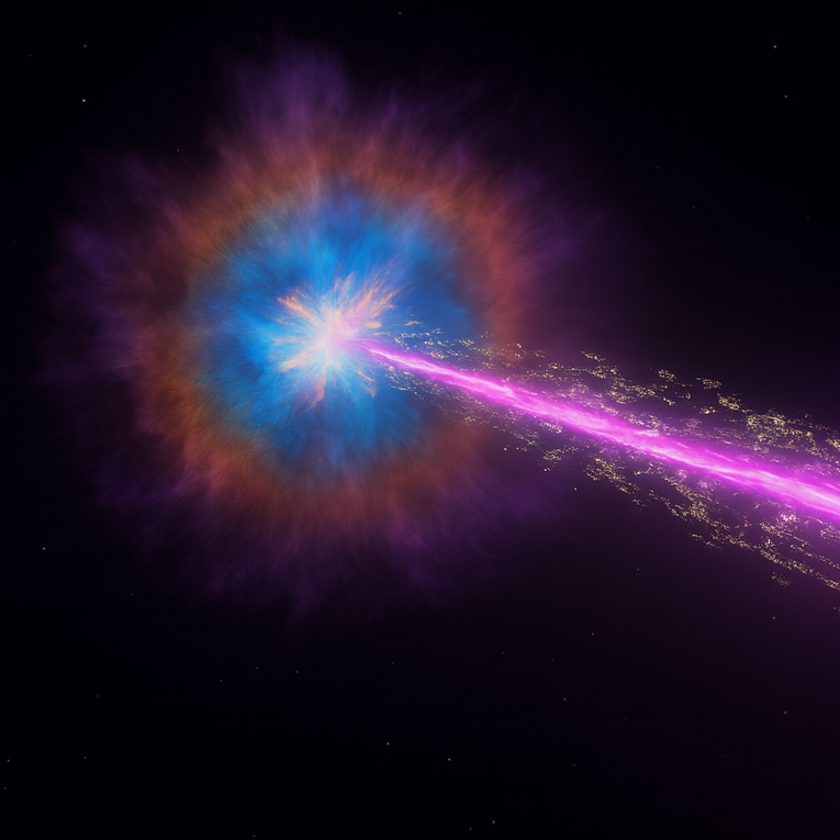 GRB-ovi spadaju u najekstremnije pojave u svemiru s najvećim energijama. Nastaju u trenucima velikih kozmičkih katastrofa, primjerice kada masivna zvijezda eksplodira kao supernova (slika dolje) i kolabira u crnu rupu ili kada se spoje dvije neutronske zvijezde. U tom procesu iz središta eksplozije izbacuju se mlazovi plazme koji putuju brzinom blizu brzine svjetlosti.