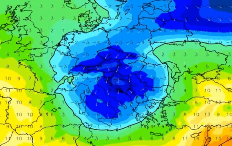 Na Facebook stranici Istrameta objavljena je simulacija mogućeg dolaska hladnoće sa Sjevernog pola na Balkan.