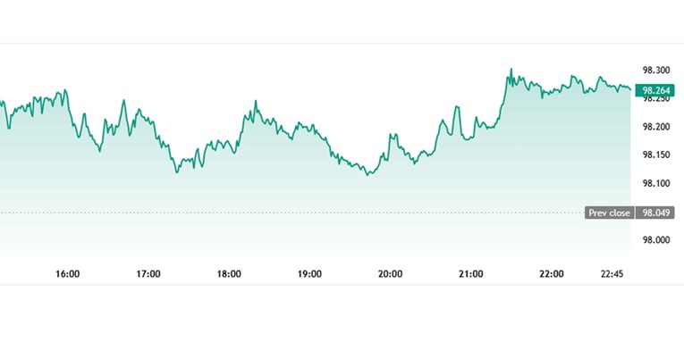 Dolarov indeks, koji pokazuje vrijednost američke prema šest najvažnijih svjetskih valuta, spustio se prošloga tjedna 0,44 posto, na 98,27 bodova.
