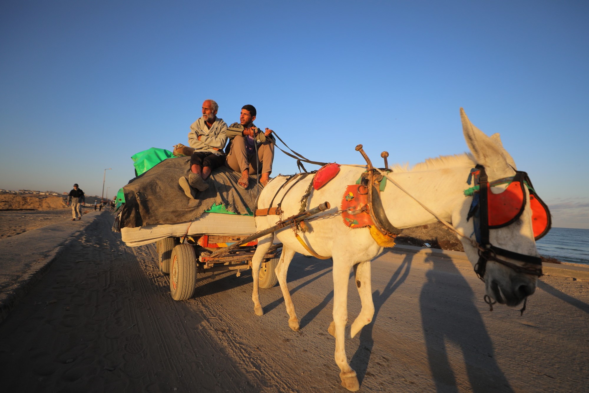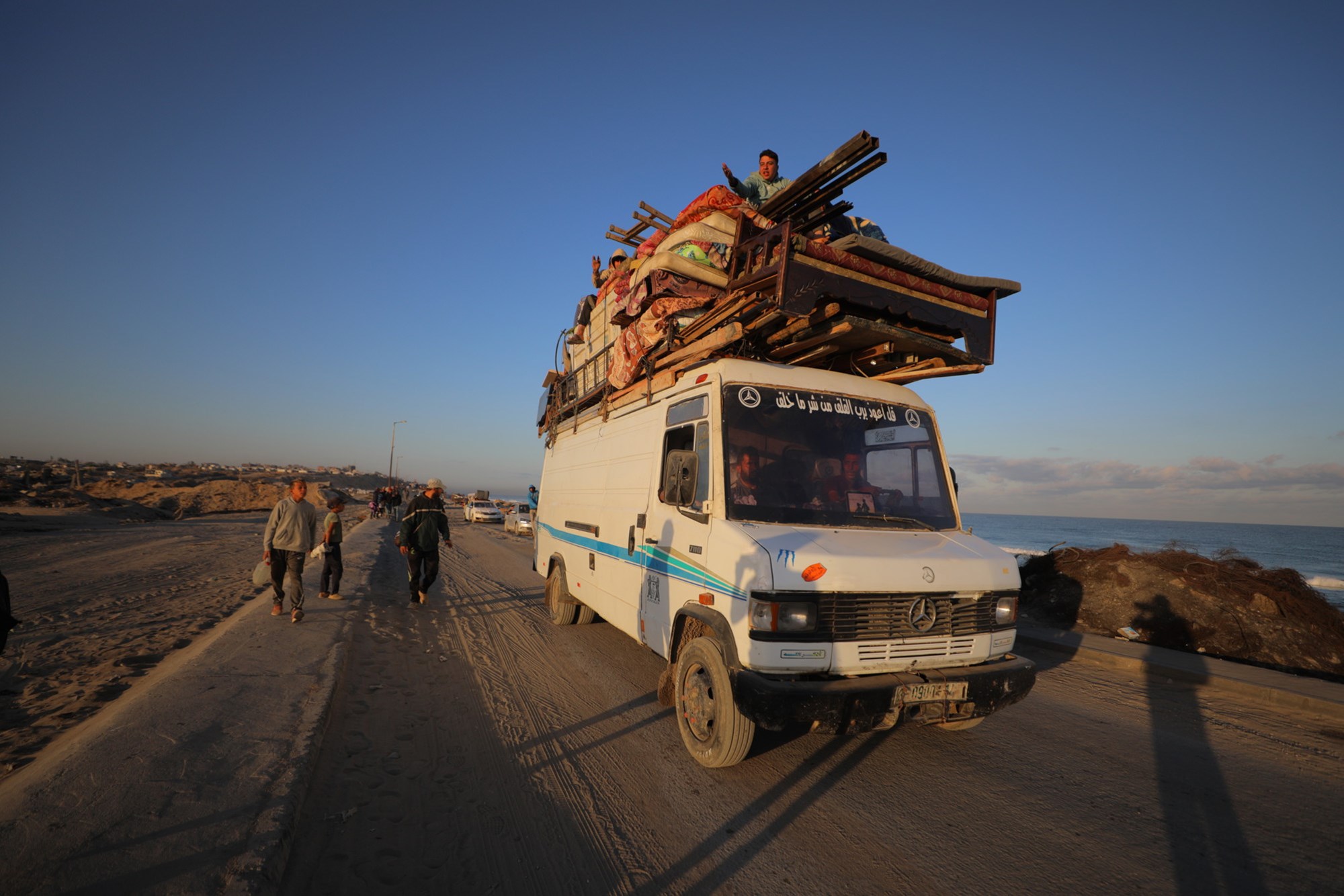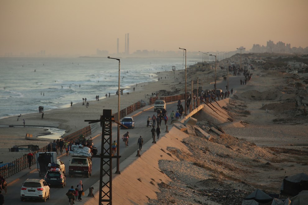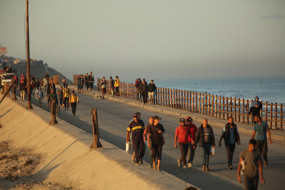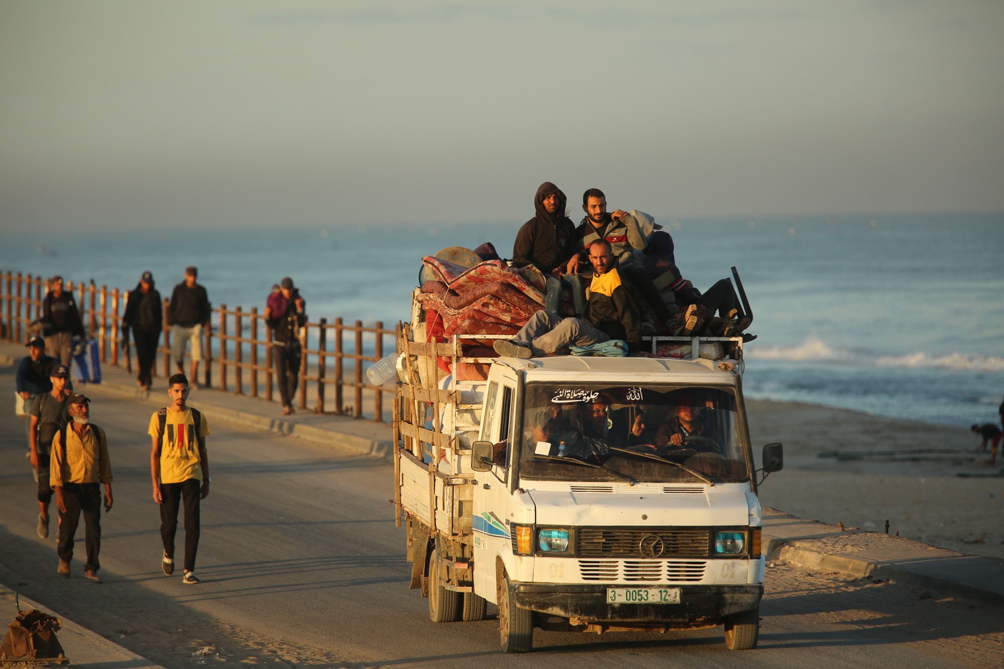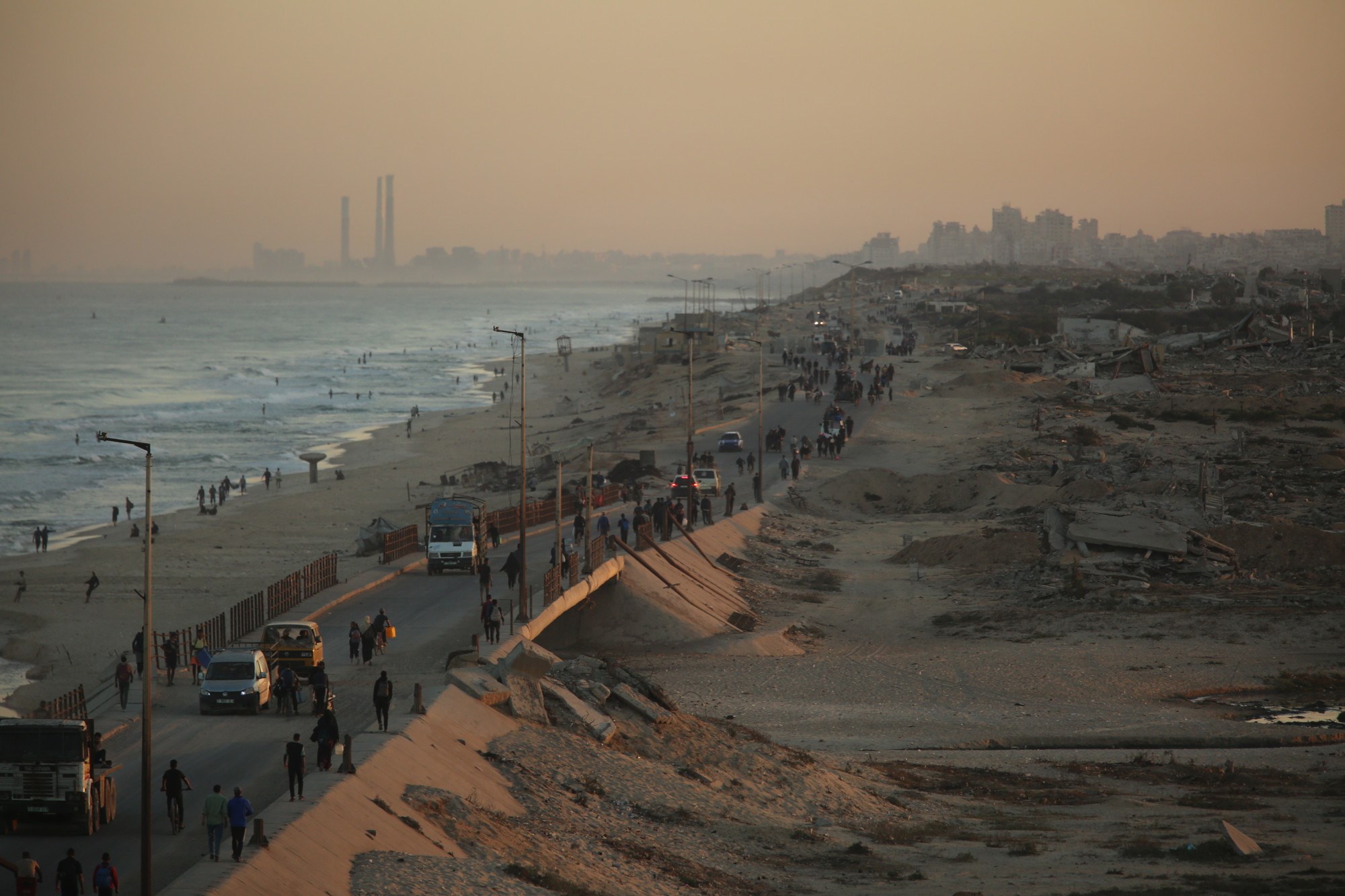 TISUĆE Palestinaca danas putuju pješice, automobilima i kolicima uz obalu Pojasa Gaze prema svojim napuštenim domovima na sjeveru dok traje primirje između Izraela i palestinske militantne skupine Hamas.