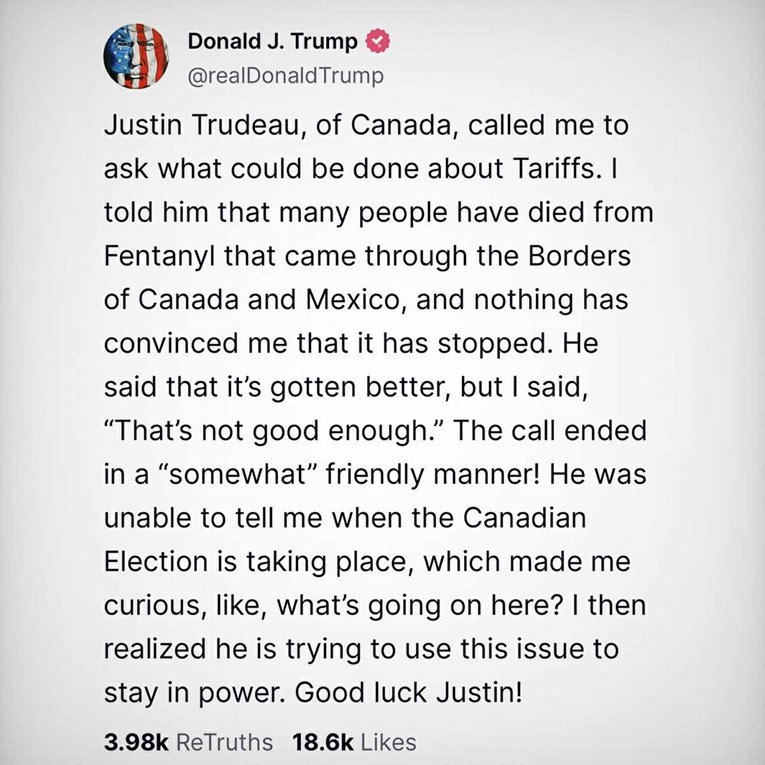 Trump: Nazvao me Trudeau. Poziv je završio na pomalo prijateljski način