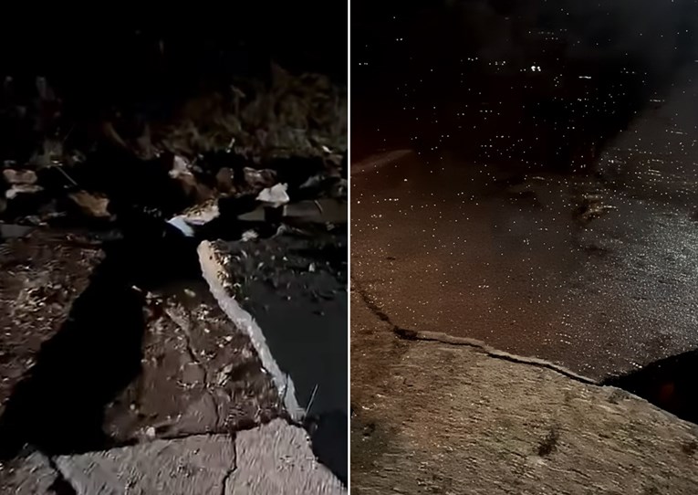 VIDEO Na Pelješcu napukla cesta zbog udara groma