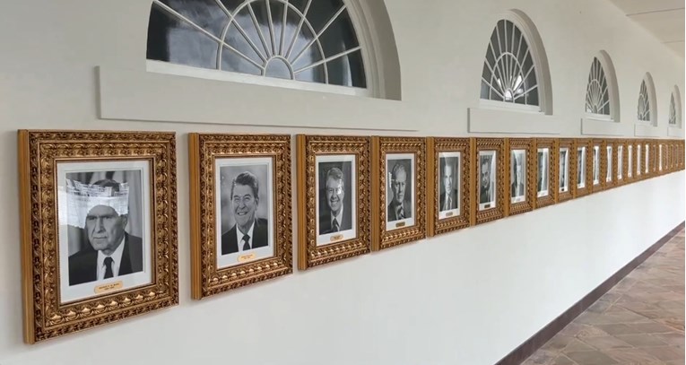 AMERIČKI predsjednik Donald Trump predstavio je novi dodatak Bijeloj kući - "predsjedničku stazu slavnih", smještenu duž istaknute kolonade ispred Zapadnog krila. Ovu novost u srijedu je na društvenoj mreži X objavila Margo Martin, Trumpova savjetnica za komunikacije, podijelivši video crno-bijelih portreta predsjednika u zlatnim okvirima, piše CNN.
