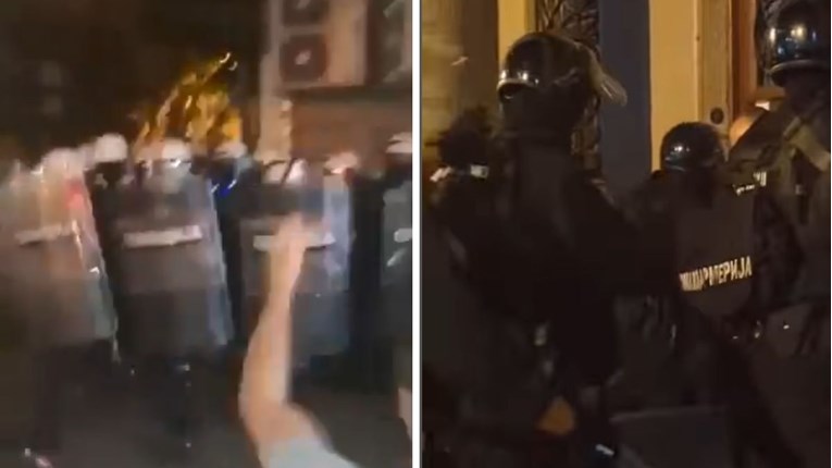 Oko 00:30 sati došlo je do obračuna policije s prosvjednicima pred Pravnim fakultetom. Kako javlja Nova.rs, okupljene su tukli i potisnuli uz zgradu. Ima privedenih.
