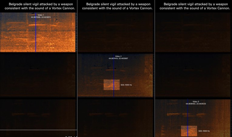 Mnogi stručnjaci postavljaju pitanje je li ono što je korišteno 15. ožujka na demonstrantima bio zvučni top, dok je nevladina organizacija Earshot u svojoj analizi navela da se zvukovi koji su im dostavljeni podudaraju sa zvukom vorteks topa.