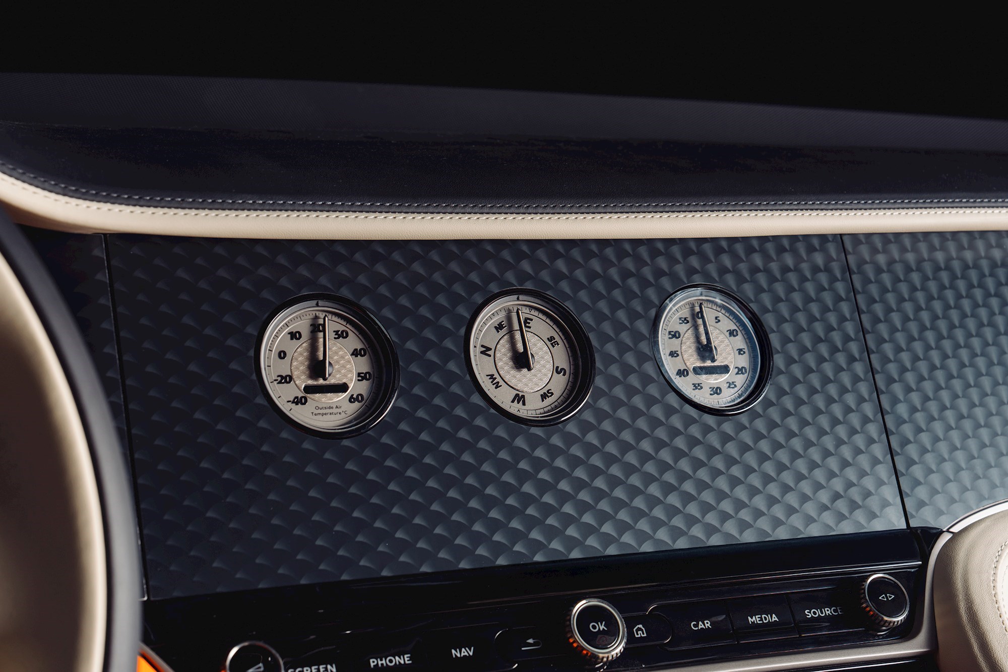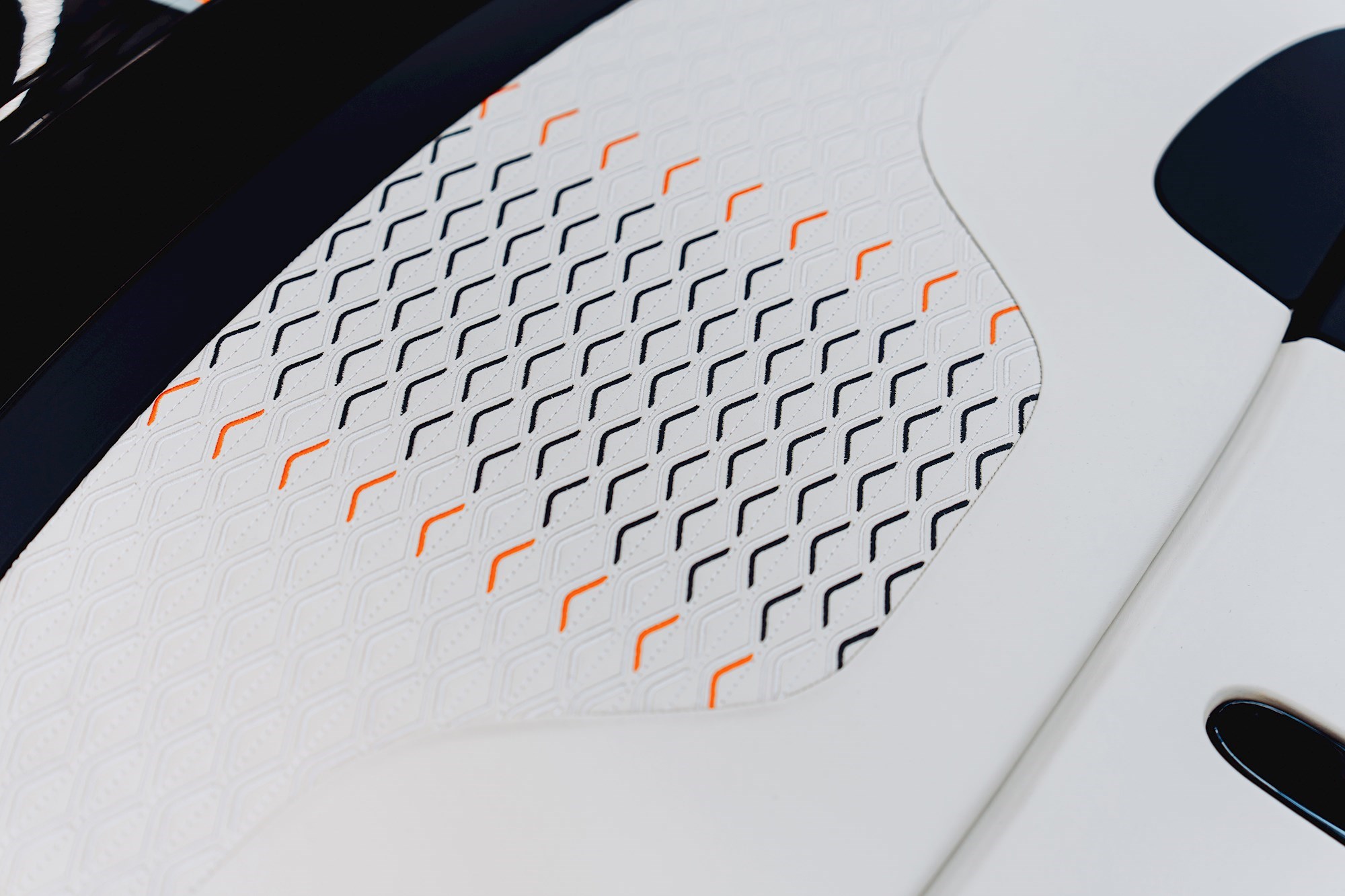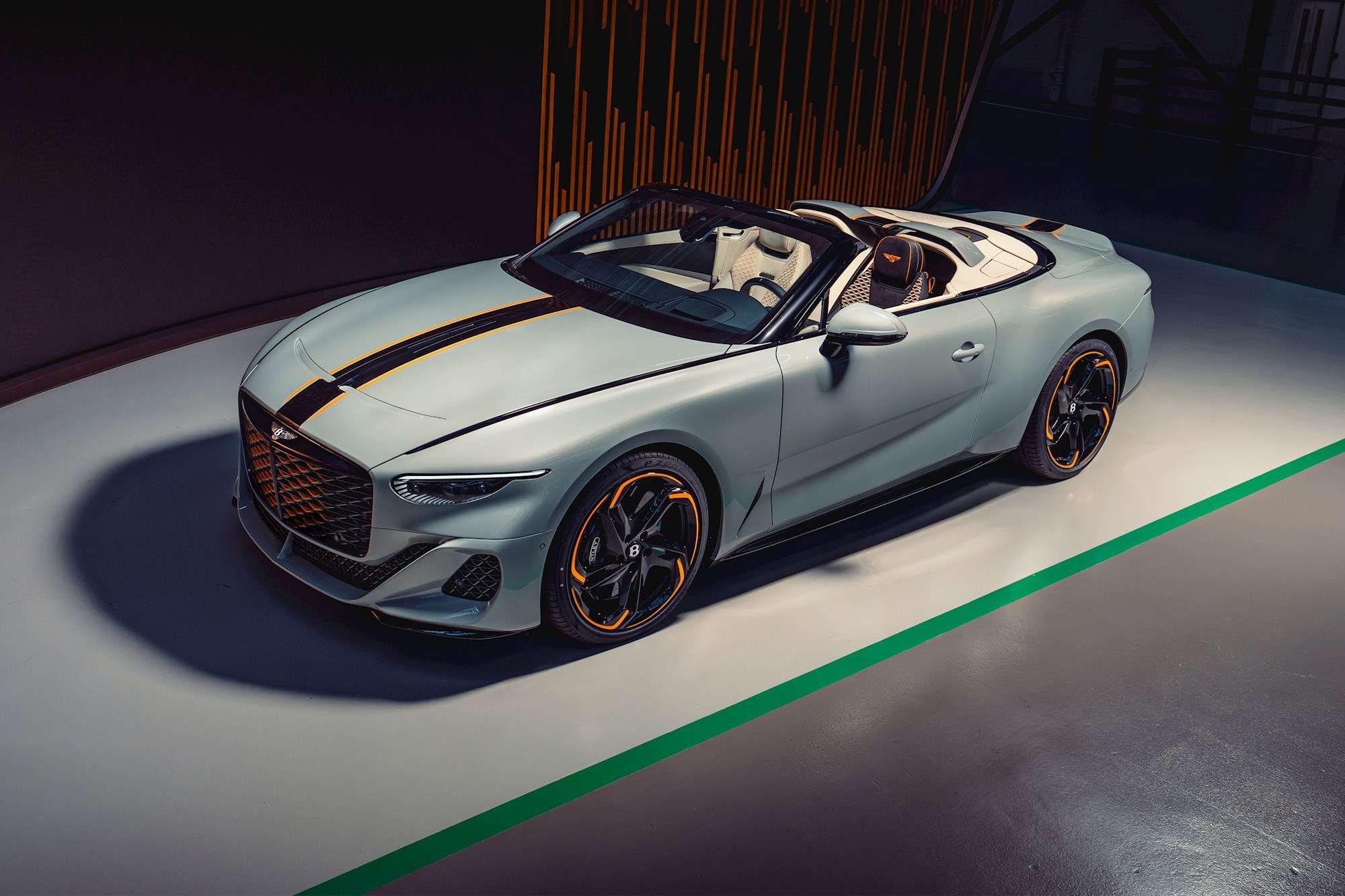 Vozačka strana odiše sportskim karakterom, sjedalo i obloge su u crnoj Beluga koži i Alcantari, s detaljima u Linen i Mandarin boji te kontrastnim šavovima. Narančasti pojas od kože obavija vozački prostor, prelazeći preko instrumentne ploče i središnje konzole.