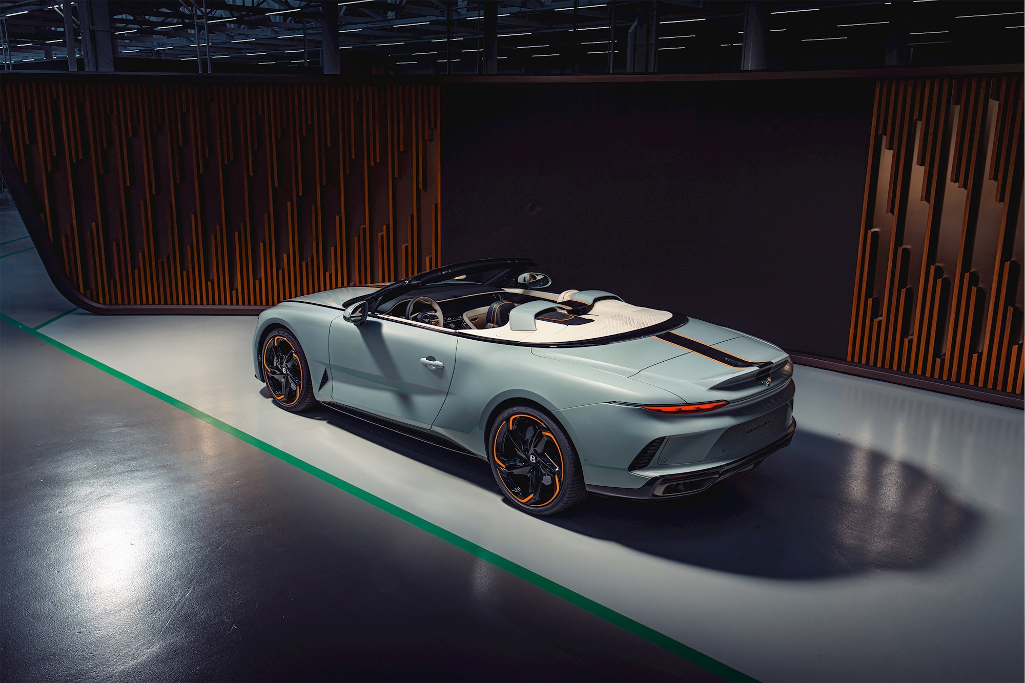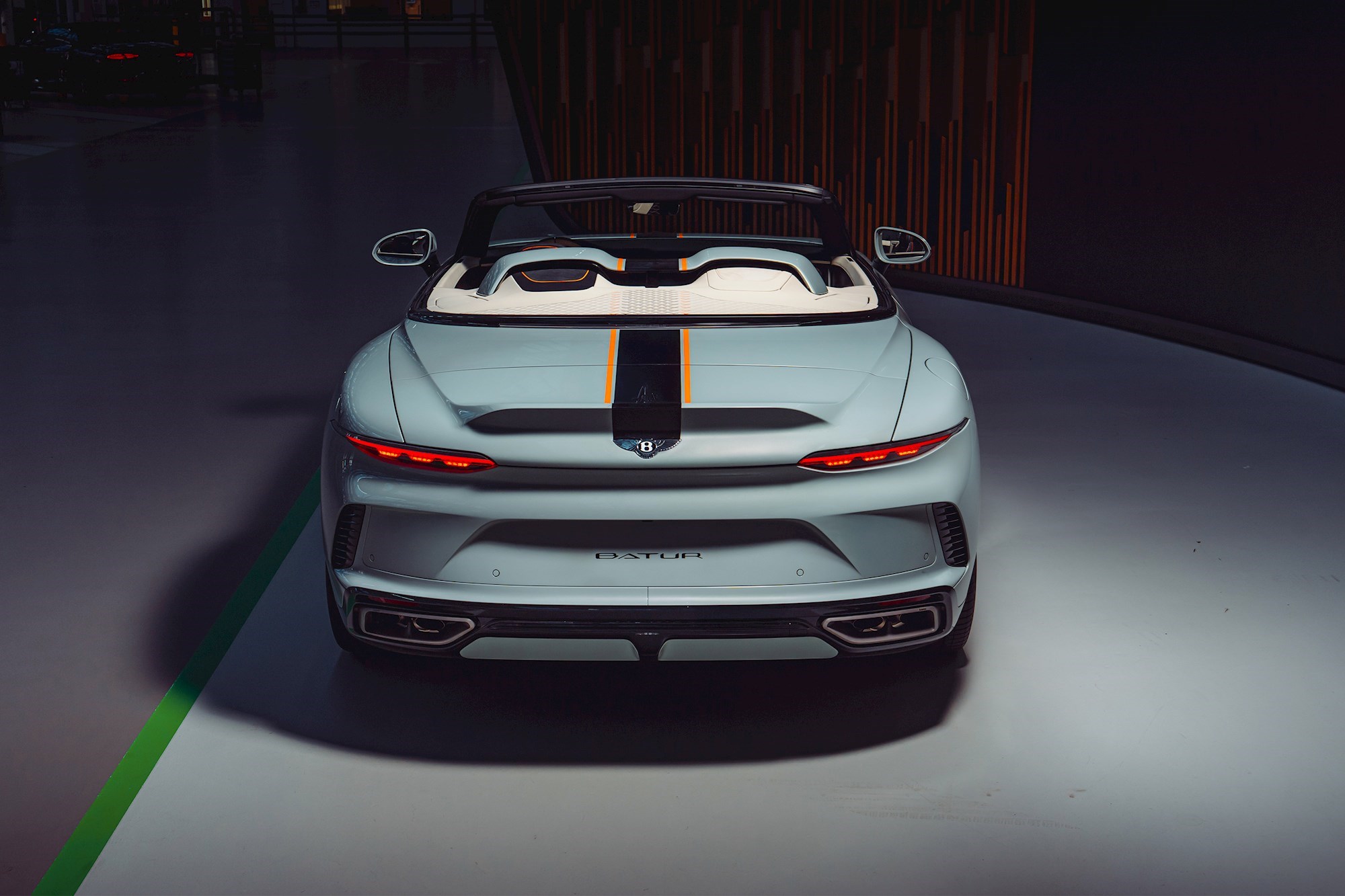 Batur Convertible je jedinstveni kabriolet koji spaja vrhunsku snagu s besprijekornom ručnom izradom. Prvi primjerak je pravi unikat završen u ekskluzivnoj boji Opalite s crnom Beluga trkaćom prugom i detaljima u Mandarin narančastoj.