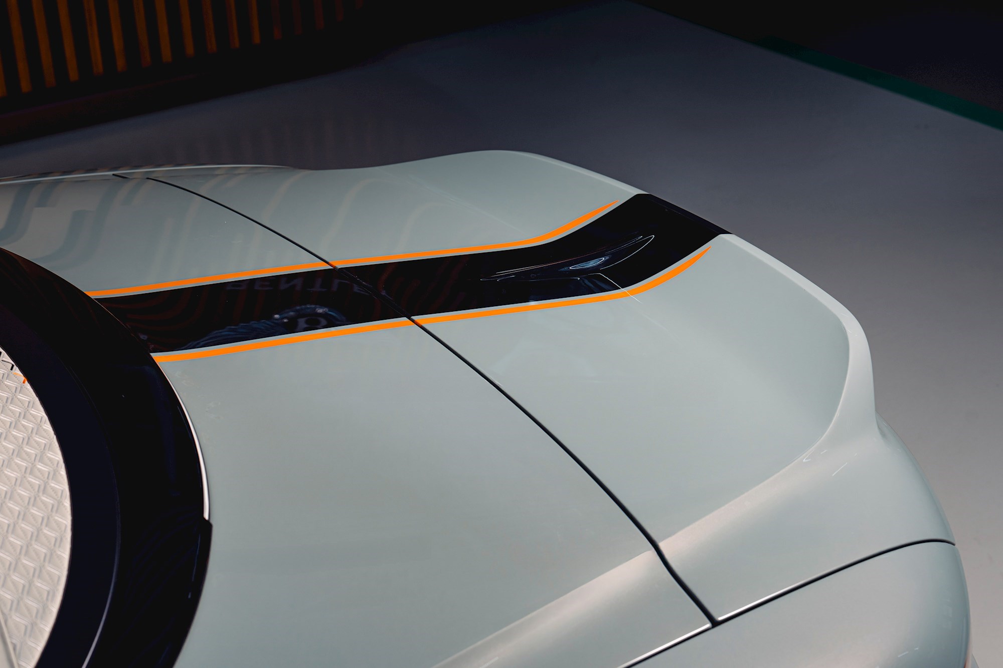 Trkaća pruga s tankim narančastim obrubom proteže se od prednje maske, preko poklopca motora i kokpita, sve do stražnjeg dijela. Posebno izrađena maska hladnjaka završena je u crnoj Beluga boji s narančastim akcentima, dok su naplatci u istom koloritu.