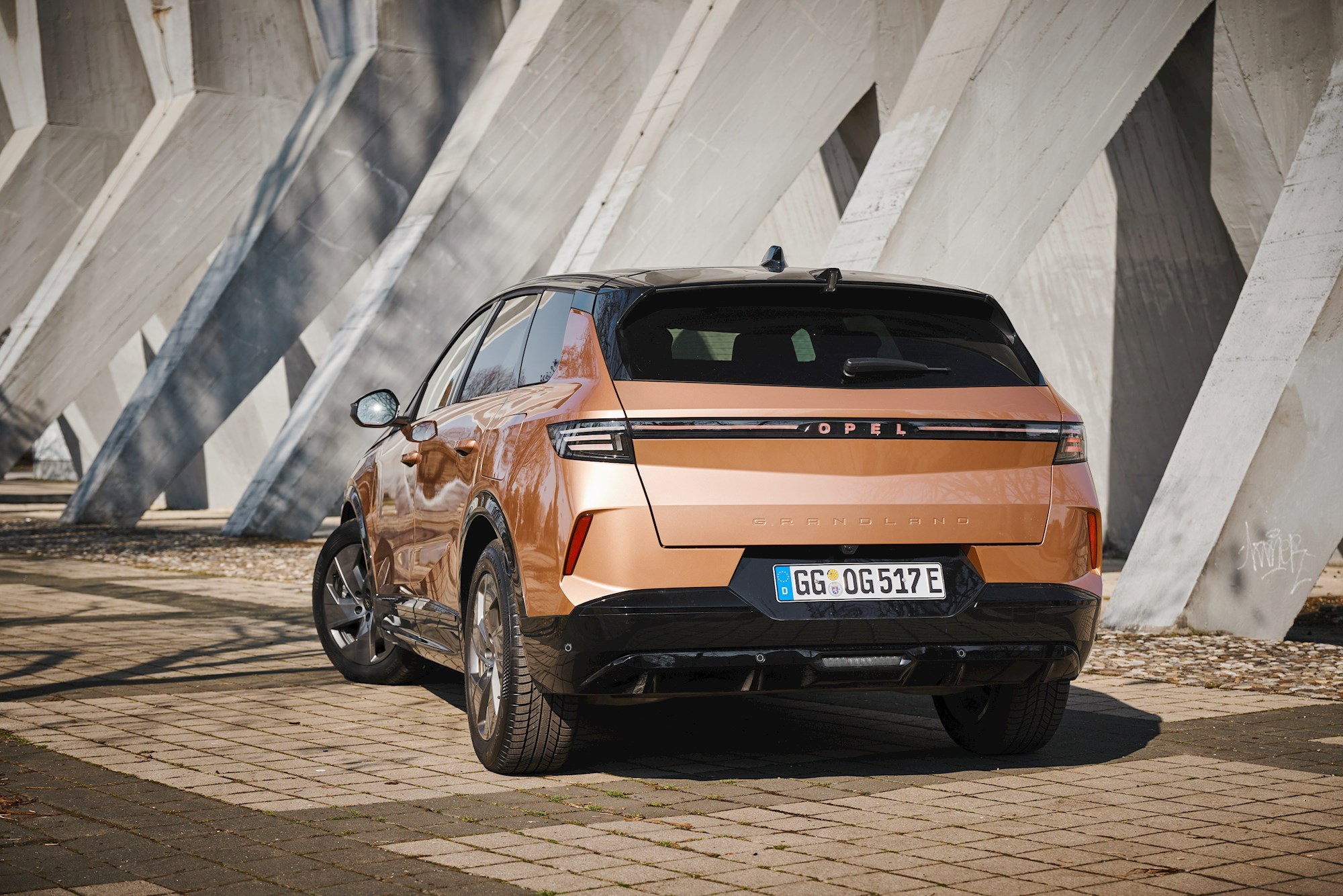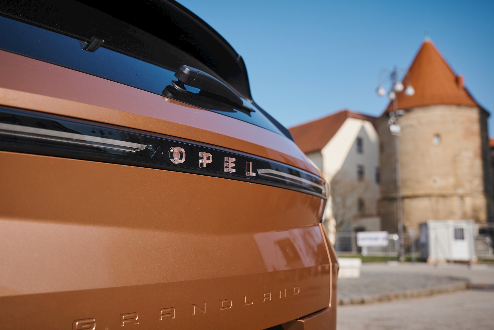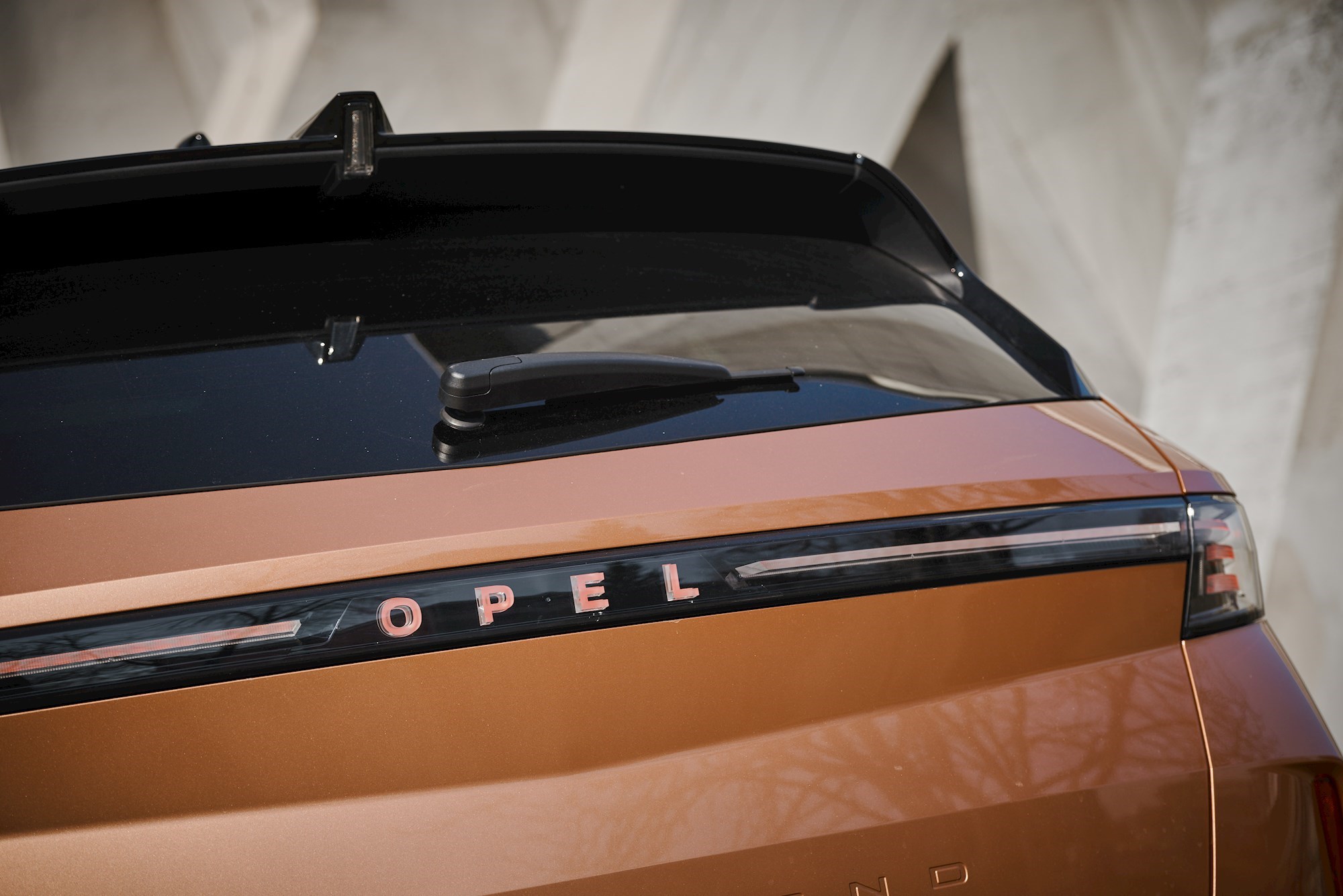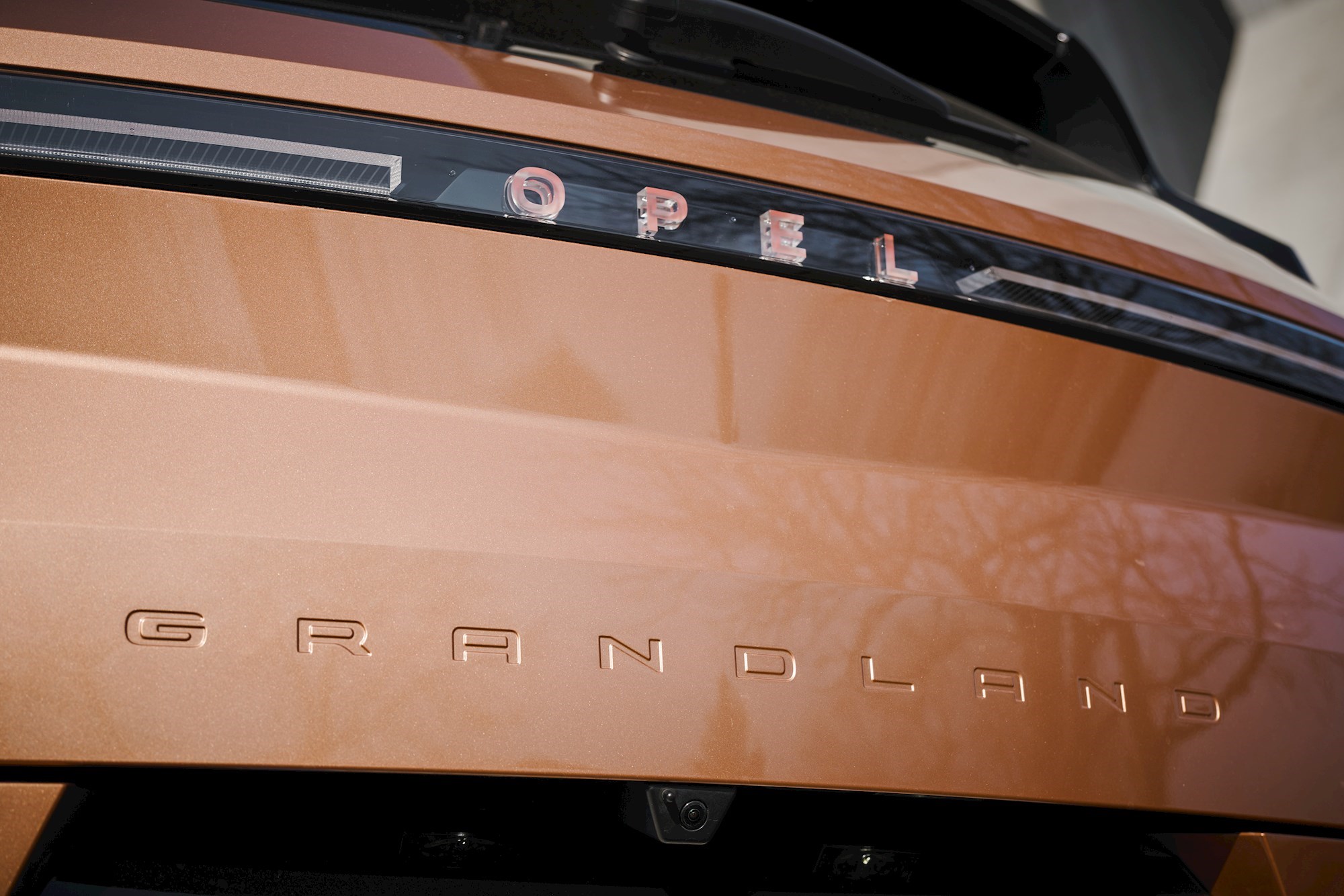 Novu generaciju Grandlanda lako ćete prepoznati. Sprijeda je to 3D vizor maska s osvijetljenim znakom munje, a straga horizontalno razvučena svjetla između kojih je osvijetljen natpis imena marke. Niže na poklopcu Opel je urezao ime modela. Cjelokupan model inspiraciju nalazi u konceptu Opel Experimental.