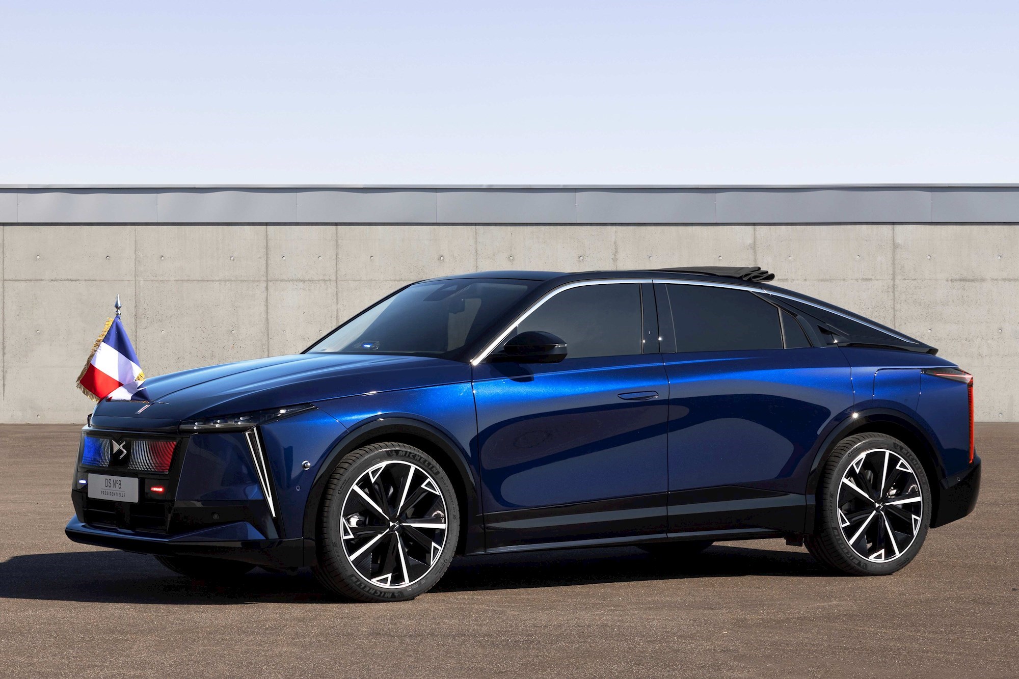U pitanju je model DS N°8, koji tek treba doći na tržište. Prvi primjerak, predstavljen u povodu 80. obljetnice Dana pobjede u Europi, predan je Macronu na korištenje, čime je francuski predsjednik postao prvi čelnik neke države koji koristi električno pogonjenu predsjedničku limuzinu.