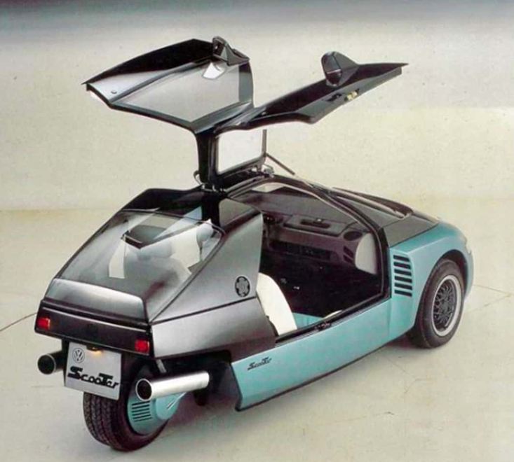 Na Ženevskom salonu automobila 1986. predstavljen je Volkswagen Scooter, radikalna studija štedljivog vozila s tri kotača, gdje je jedan kotač bio straga. Imao je i krilna vrata, detalj koji se u automobilskoj povijesti najčešće povezuje s legendarnim Mercedesom 300 SL, no ovdje nije bio simbol sporta i luksuza.
