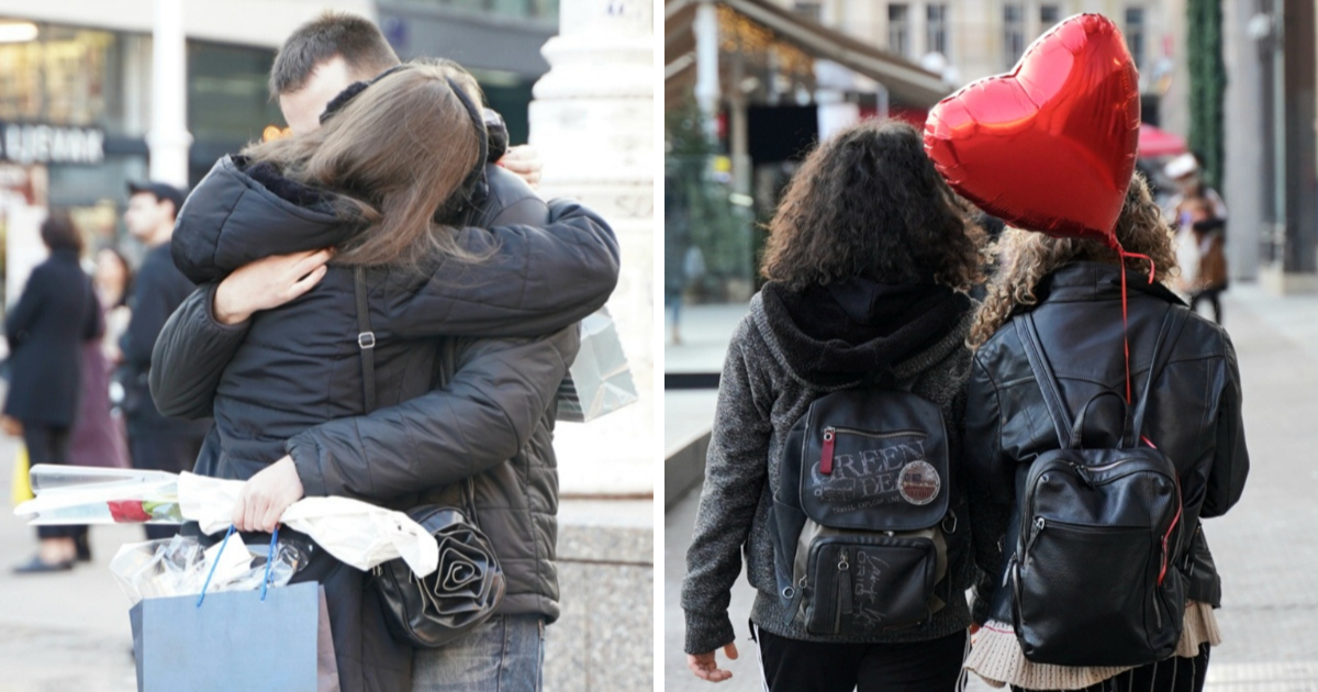 Grad je bio prepun zaljubljenih parova koji su čekali svoje partnere kako bi im dali poklon koji su im pripremili za Dan zaljubljenih. Mnogi od njih jedva su dočekali i zagrljaj voljene osobe.