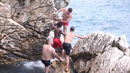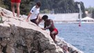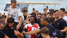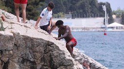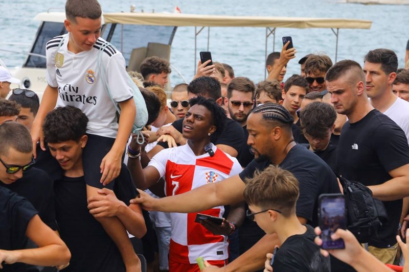 Obukao je dres hrvatske reprezentacije, glumio rimskog legionara, kušao lokalne specijalitete i, naravno, bacao se u more. U jednom trenutku zaigrao je i vaterpolo, noseći kapicu s hrvatskom šahovnicom, a potom se okušao i u skokovima u more na plaži Ježinac. Cijelo to vrijeme stalno je bio okružen rijekom hrvatskih fanova.