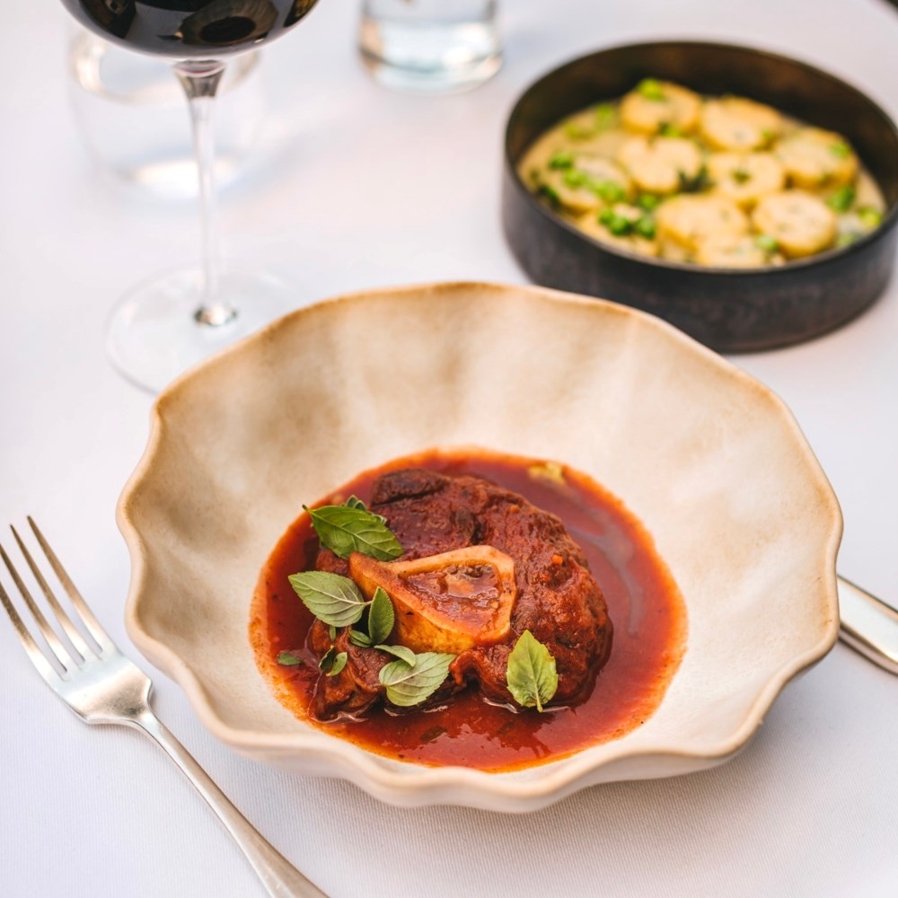 Glavna jela uključuju i neke klasike pripremljene na suvremen način, a posebna se pažnja pridaje detaljima i odabiru sezonskih namirnica. Jelenji ossobuco poslužuje se s domaćim kukuruznim njokima u umaku od začinskog bilja i vina, dok je janjeći kare uparen s mladim graškom i brokulom, a za dodatnu teksturu tu je i panko crumble s notom mente.
