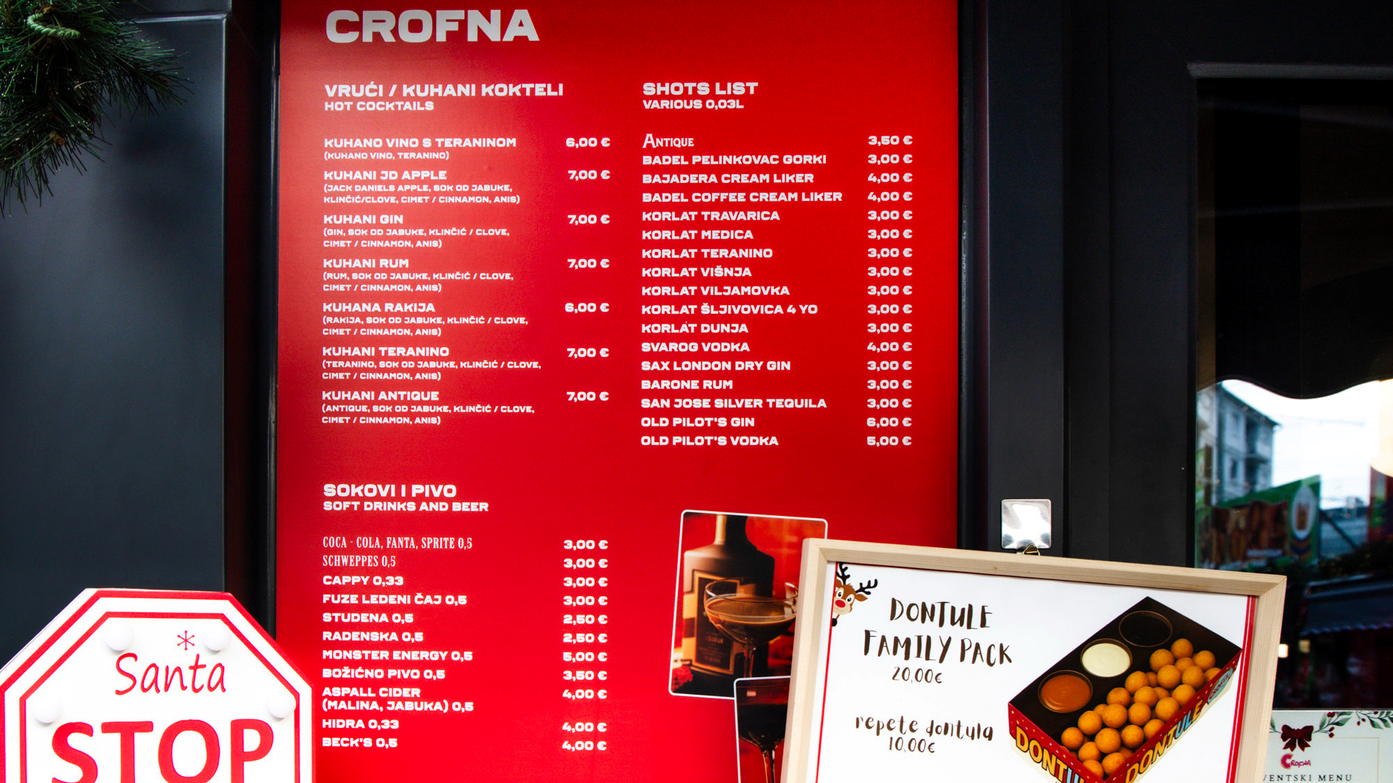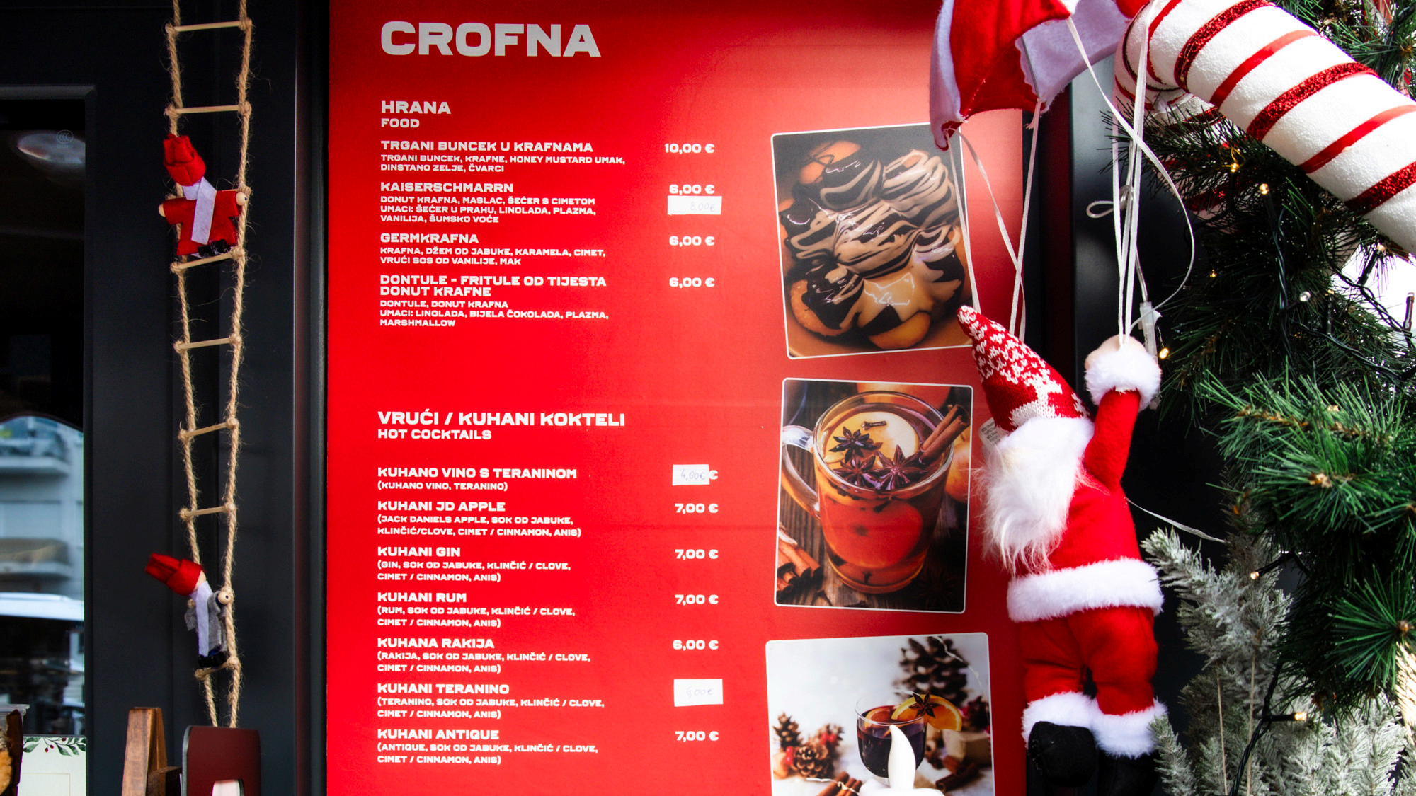 No, ne nudi Crofna samo to. U ponudi je i Kaiserschmarrn s raznim umacima po izboru za 6 i 8 eura, Germkrafna (nešto između krafne i germknedle) za 6 eura te Dontule - fritule od tijesta donut krafne za 6 eura. Sve zvuči vrlo inovativno, a drugi put se zasigurno vraćamo da probamo i jedan od ovih deserata. Uz to, i ovdje nude razne kuhane koktele, od kuhanog vina s teraninom za 4 eura do nešto skupljih kuhanog gina i kuhanog ruma za 7 eura.