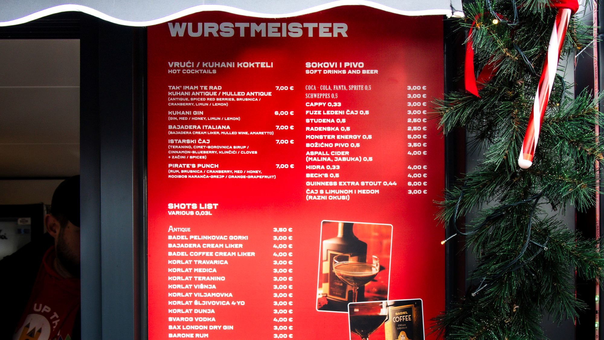 Kobasice ćete pronaći i na kućici Wurstmeister. Za najmanje izbirljive tu je hot dog za 3 eura, a ako vam se jede nešto konkretnije, možete naručiti debrecinku, kranjsku, domaću ili slavonsku kobasicu te debrecinku i slavonsku s BBQ umakom - a cijene se kreću od 4 do 7 eura.