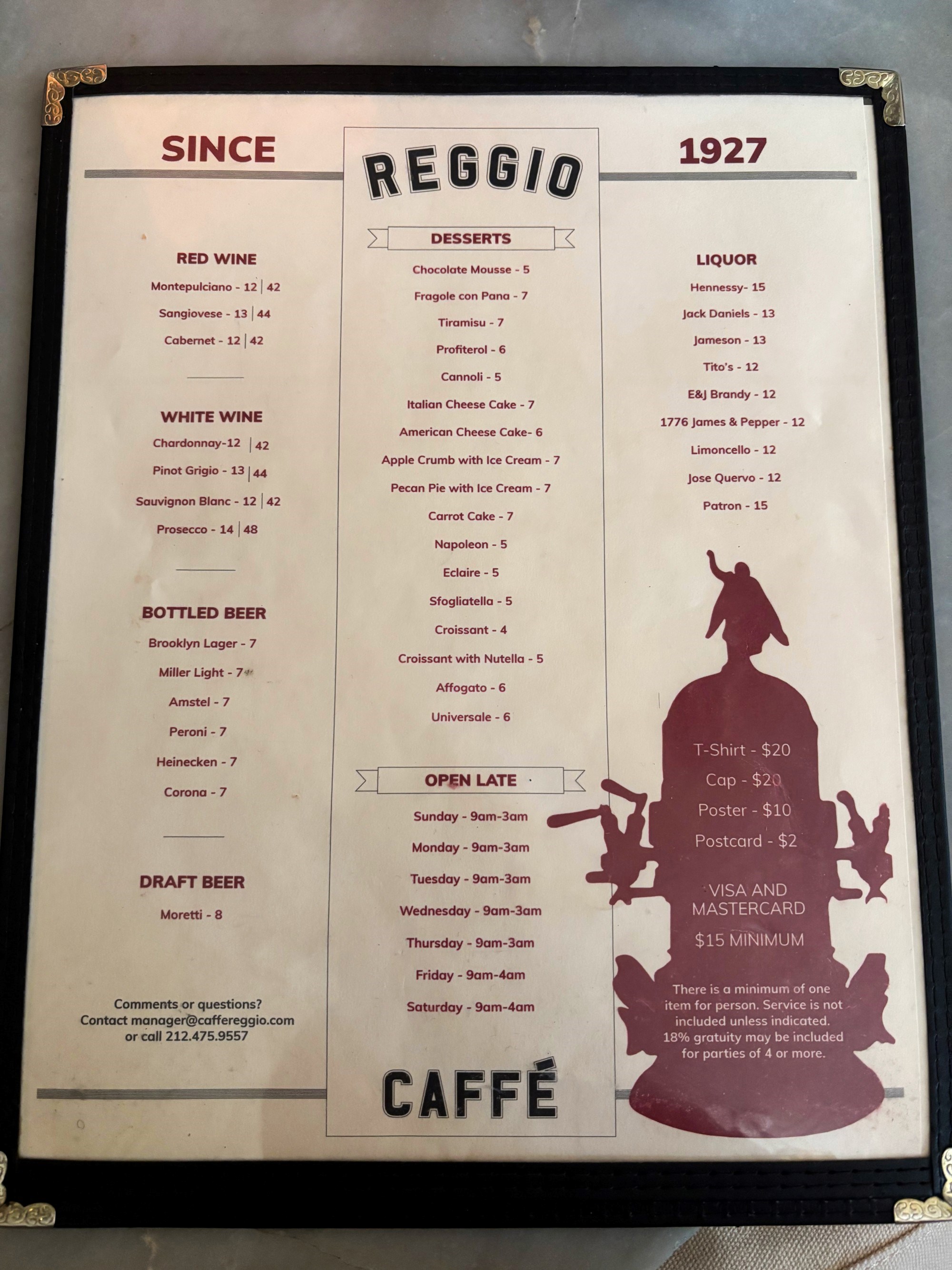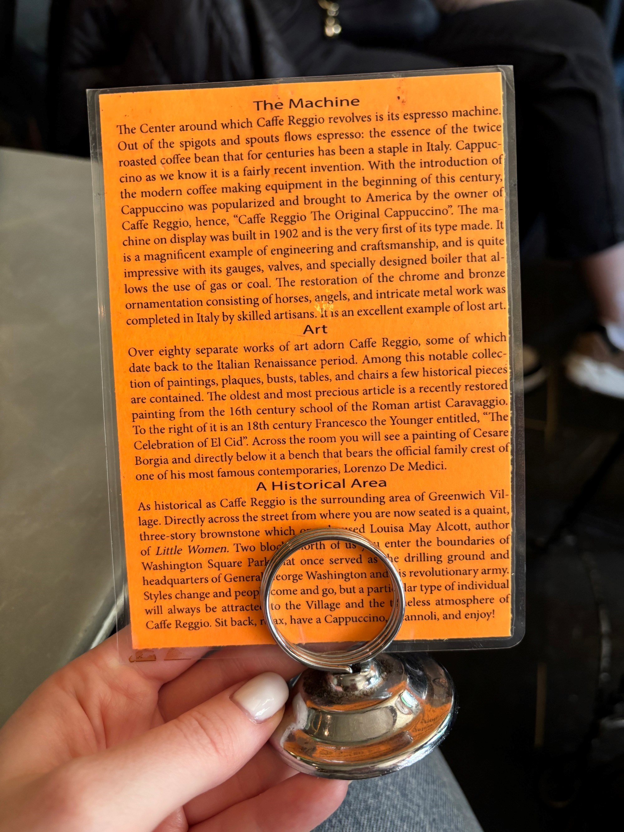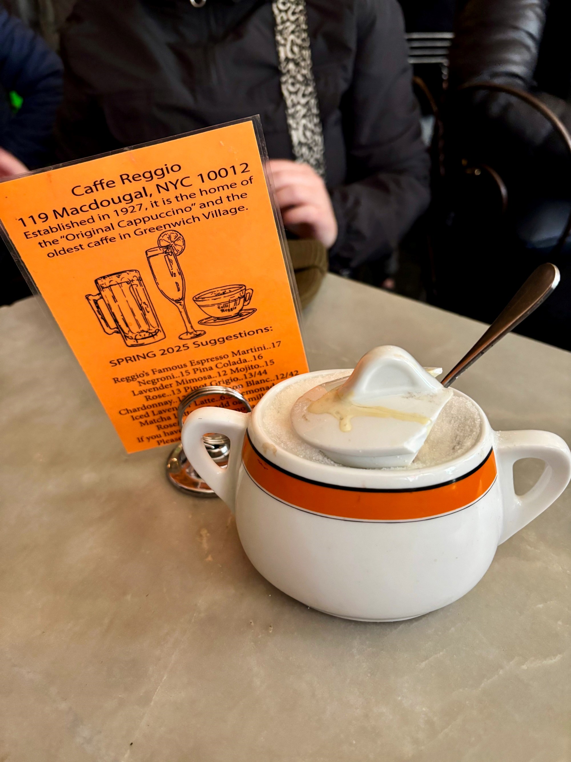 Inače, upravo je ovdje, kažu, poslužen prvi cappuccino u Americi - što ovom mjestu daje još jedan sloj kultnog statusa. Na ulazu stoji natpis "Home of the Cappuccino", a uz vrata su mali stolić i stolica uz koje se stvara red - turisti sjedaju i fotografiraju se pozirajući poput Al Pacina.