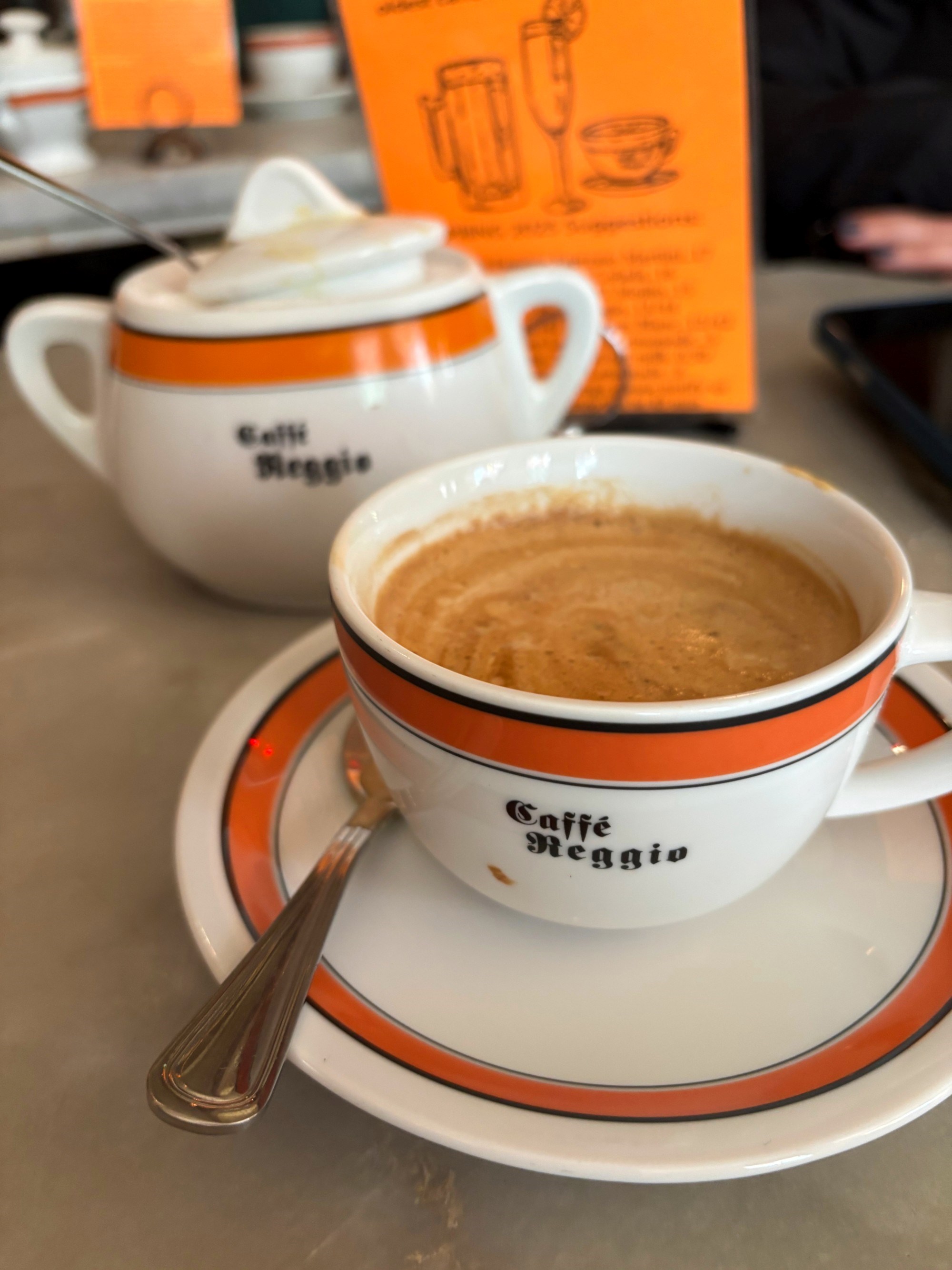 Odmah ću napomenuti da su mnogi hrvatski turisti u ovaj kafić položili velike nade - ponajviše onu da će ovdje napokon popiti "pravu kavu". Jer, kako piše već na ulazu, Reggio je dom dobre kave. A kavoljupci s naših prostora teško se mire s američkim pristupom - filter kavama, preljevima, posipima i sličnim dodacima koji od kave rade, kako kažu, desert za djecu.