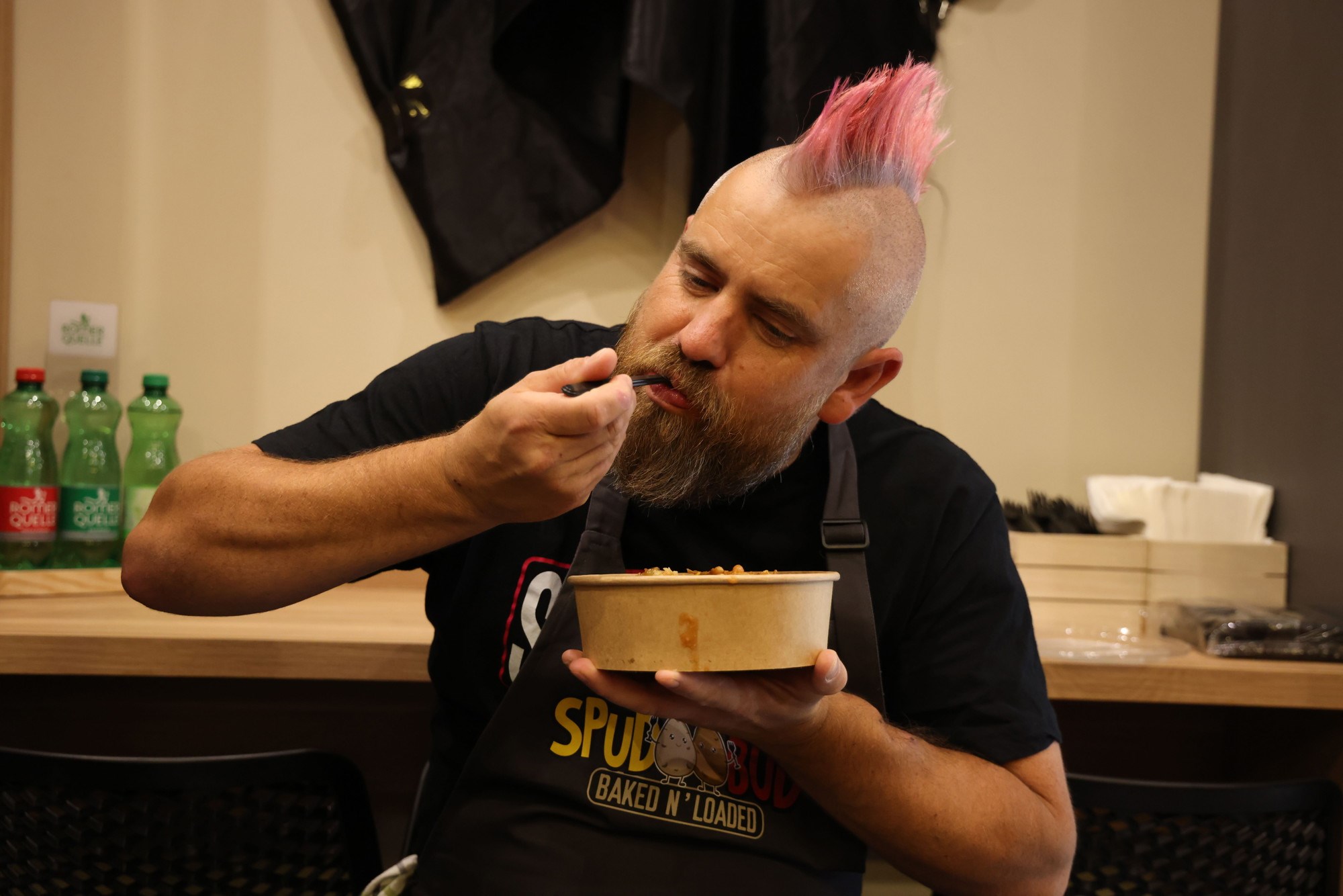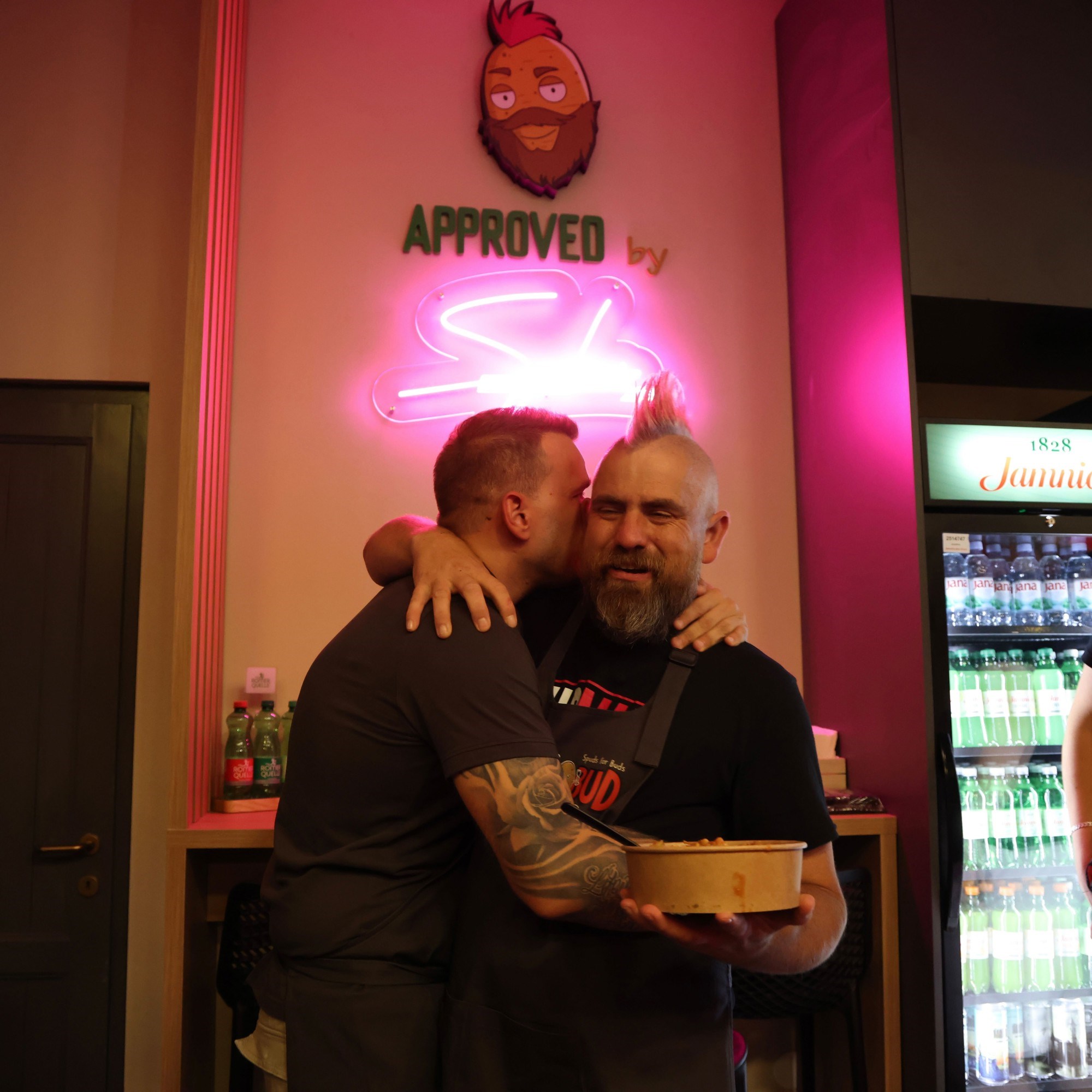 Na zidu lokala sada svijetli natpis "Approved by Spudman", uz ilustraciju njegove prepoznatljive ružičaste irokeze.