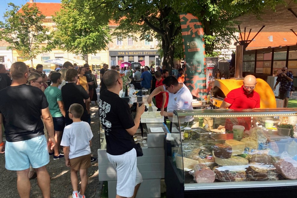 Definitivno premali broj stolova nije omeo posjetitelje koji su za uživanje u dobroj hrani iskoristili drvene klupice obližnjeg parka i tržnice.