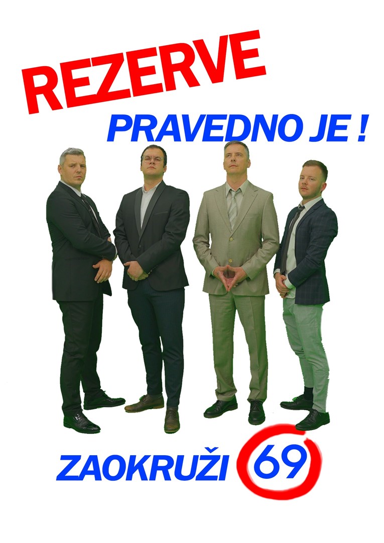 PROTEKLIH dana u Makarskoj su se pojavili plakati nepoznate izborne liste "broj 69". Brzo se otkrilo da iza liste "PRAVEDNO JE!" stoji grupa Rezerve koja je tako promovirala svoj istoimeni novi singl s albuma Sedmo nebo objavljenog za Dallas Records. Grupa je iskoristila predizbornu kampanju kao prikladno vrijeme za promociju singla, što im je donijelo i medijsku pažnju na nacionalnoj razini.