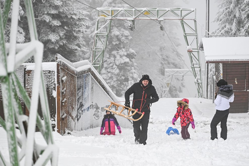 SLJEME je zabijelio snijeg, a Zagrepčani su požurili na snježne radosti. Djeca na sanjkama mogla su se vidjeti na svakom koraku, a prvi "zimski" dan izmamio je osmijeh na lica mnogih. Atmosferu na Sljemenu pogledajte u galeriji i u videu.