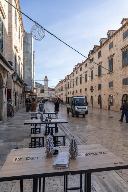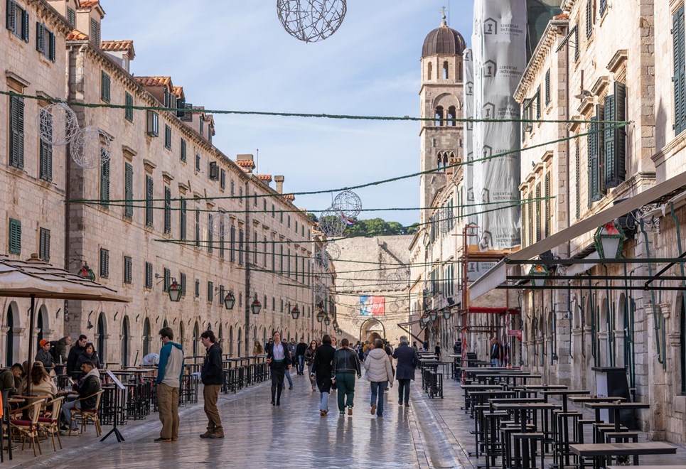 DUBROVNIK je ove godine doživio značajnu promjenu u konceptu Zimskog festivala i adventskog programa jer se po prvi put nakon dugih godina na Stradunu neće postavljati tradicionalne adventske kućice. Umjesto njih, na najpoznatijoj gradskoj šetnici postavljeni su stolovi i stolice za određene ugostitelje, čime se želi popularizirati lokalna gastronomija i ponuditi posjetiteljima novi doživljaj blagdanskog druženja.