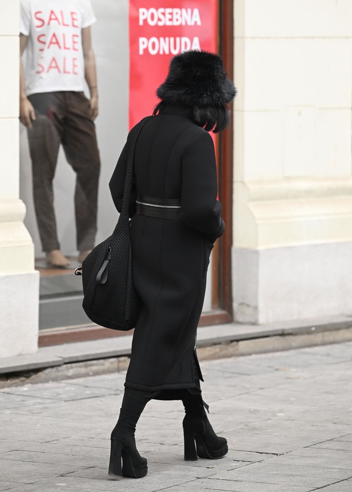 Stalna gošća zagrebačke špice, Mirela Holy, ni ovaj put nije propustila šetnju centrom grada. Nikoga neće iznenaditi da se odlučila za crnu kombinaciju, po čemu je prepoznatljiva. Nosila je dugu crnu jaknu/kaput s vidljivim srebrnim patentnim zatvaračem cijelom dužinom i još jednim zip detaljem u struku. Na glavi je imala veliku crnu krznenu kapu, a kombinaciju je upotpunila crnim čizmama na visoku petu i crnim ruksakom