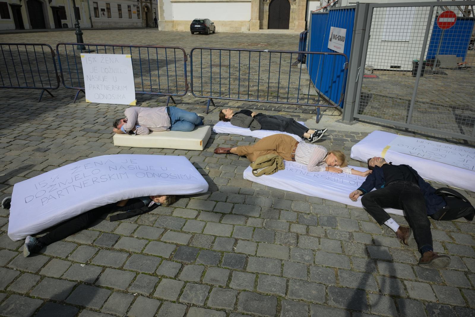 Završna točka performansa bila je na Markovu trgu, gdje su sudionici položili madrace i legli na njih, simbolično ukazujući na težinu i prisutnost nasilja u društvu.