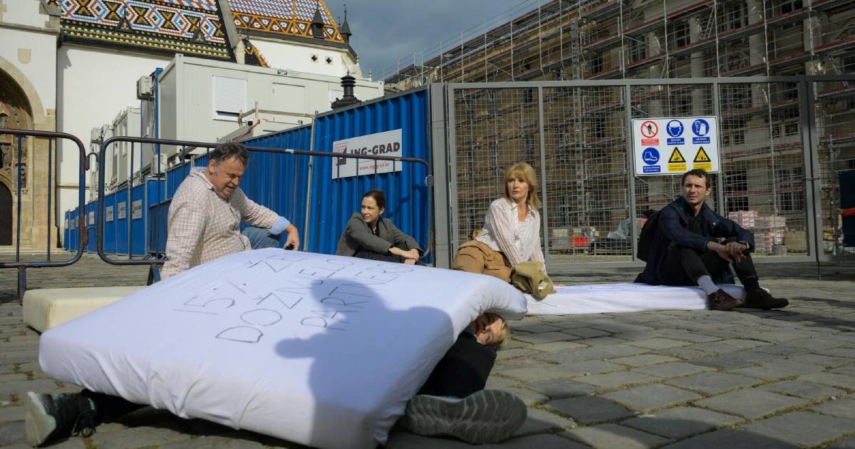 Ljudi s madracima hodali Zagrebom pa legli na Markovu trgu. O čemu se radi?
