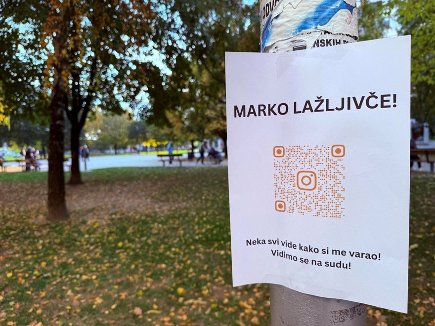 U ZAGREBAČKOM kvartu Špansko osvanuli su nesvakidašnji plakati. "MARKO LAŽLJIVČE! Neka svi vide kako si me varao! Vidimo se na sudu!", stoji na plakatima, uz QR kod.