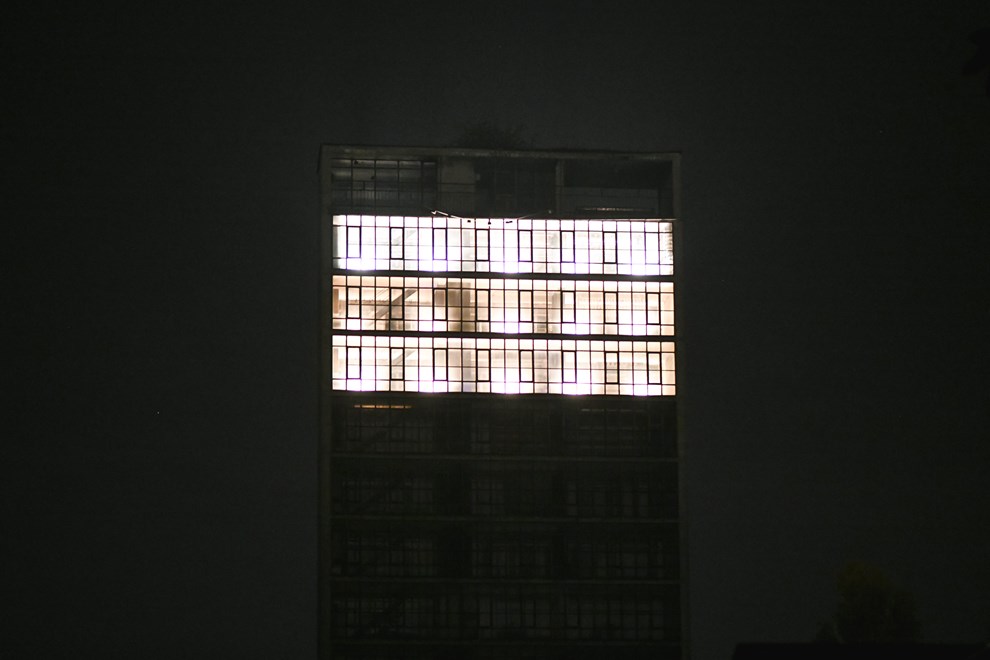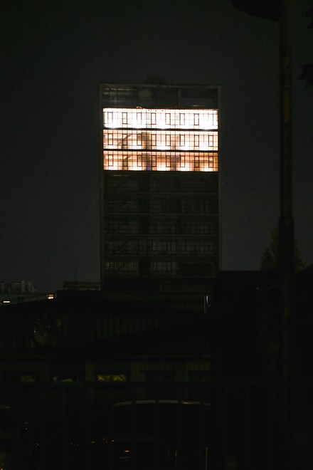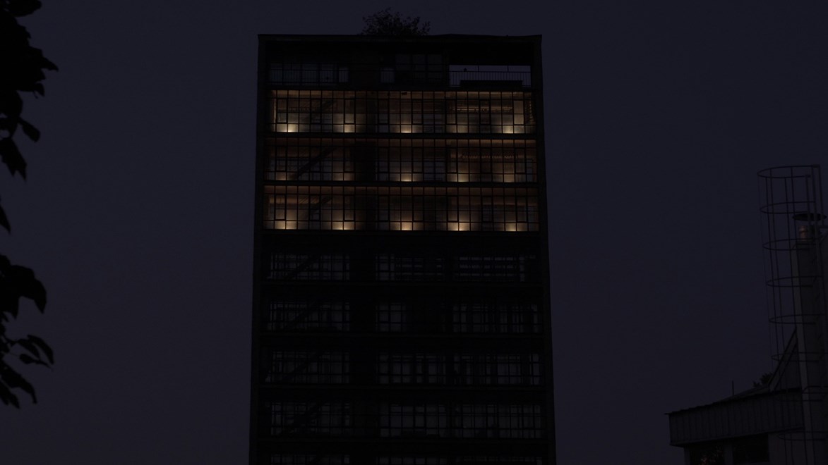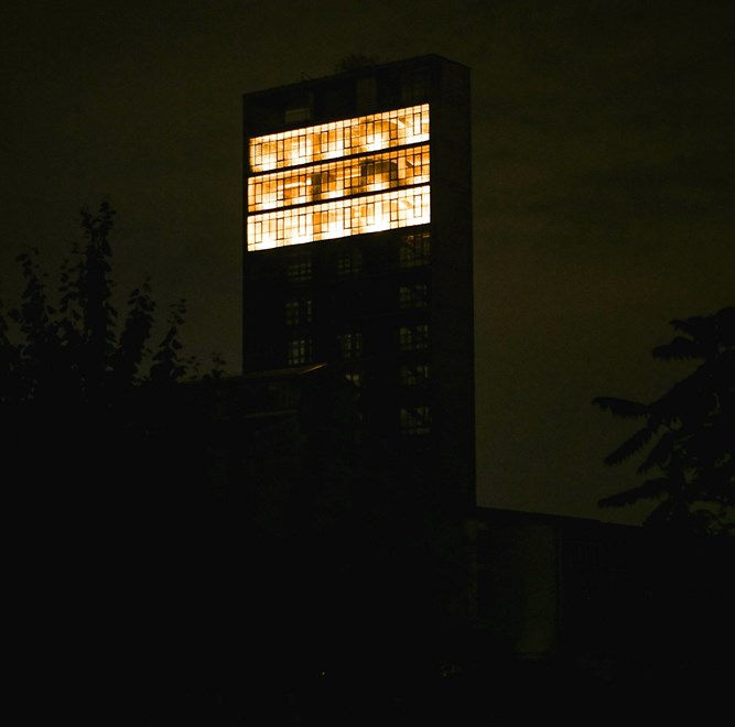 "Sam neboder TEŽ-a, poseban objekt gradske industrijske arhitektonske baštine autora Lavoslava Horvata, izgrađen upravo za svjetlo, odnosno za testiranje žarulja nekadašnje tvornice, godinama u slici grada neprimjetan i zapušten, sada postaje svojevrsni gradski svjetionik - tiha vizualna refleksija dana koji je prošao", objašnjava umjetnik.