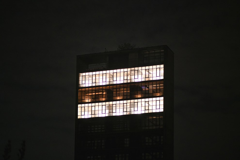 Tijekom dana mikrofoni postavljeni na tri lokacije, kod Meštrovićevog paviljona, u Muzeju suvremene umjetnosti i u Društvu arhitekata Zagreba. Oni bilježe zvučnu dinamiku grada. Kada sunce zađe, svi ti auditivni podaci pretvaraju se u svjetlosne impulse koji noću oživljavaju stari stakleni neboder Tvornice električnih žarulja TEŽ. Zvuk postaje posrednik svjetlosti, a svjetlost produžetak zvuka.