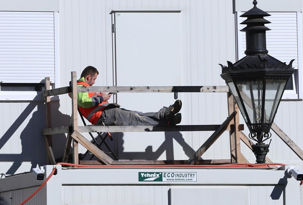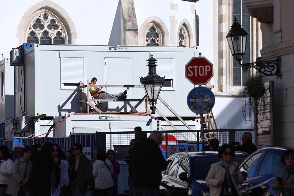 Radnik na Markovu trgu uzeo predah tijekom radova