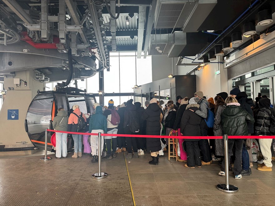 Nastala je gužva na sljemenskoj žičari, u redovima se čekalo na prijevoz. Mnogi su ponijeli svoje sanjke i ostalu opremu te strpljivo čekali da se ukrcaju i krenu na snijeg.