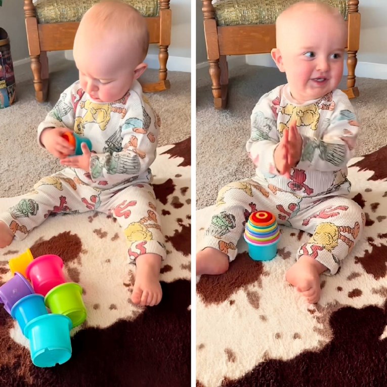 VIDEO u kojem 17-mjesečni dječak demonstrira impresivne motoričke i kognitivne sposobnosti osvojio je TikTok. Snimka koju je mama Kirstie Ellen Hibbert objavila na svojem TikTok profilu prikazuje malenog dječaka kako s lakoćom slaže šarene čašice po veličini, i to bez ijedne pogreške.