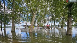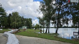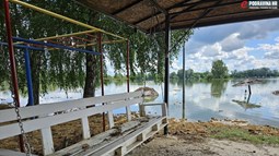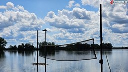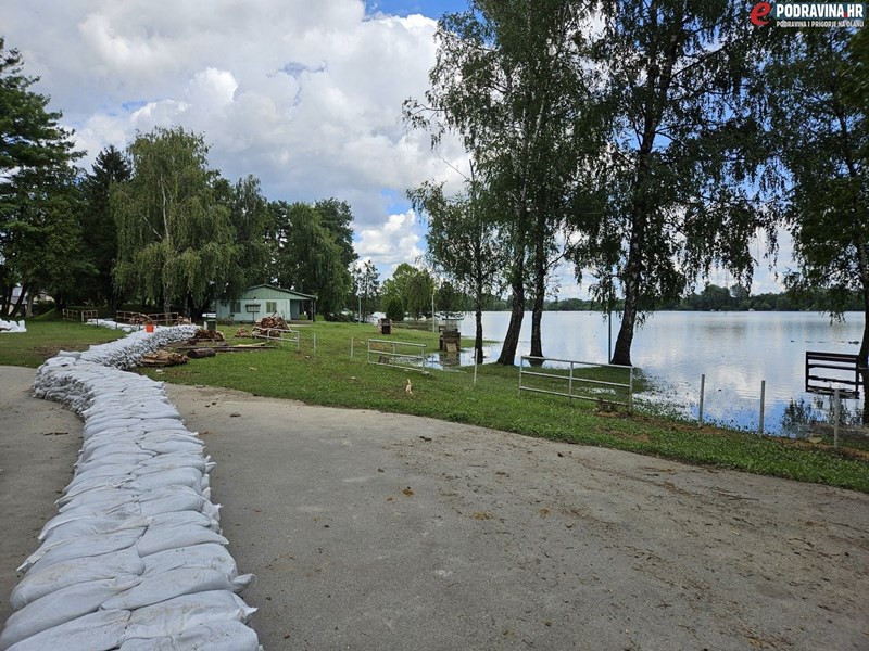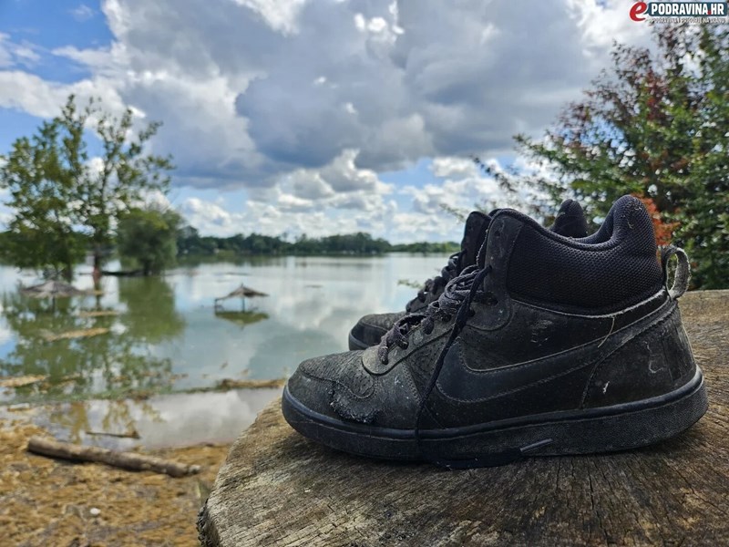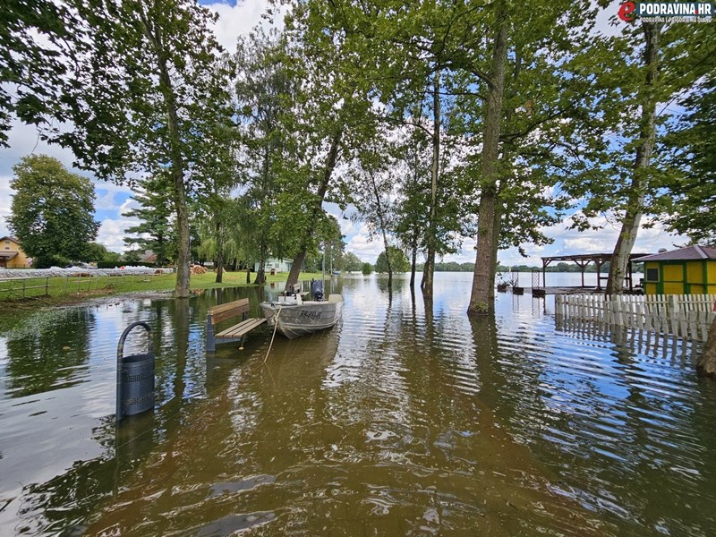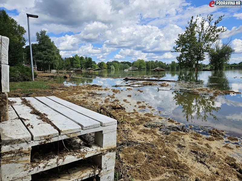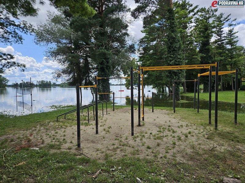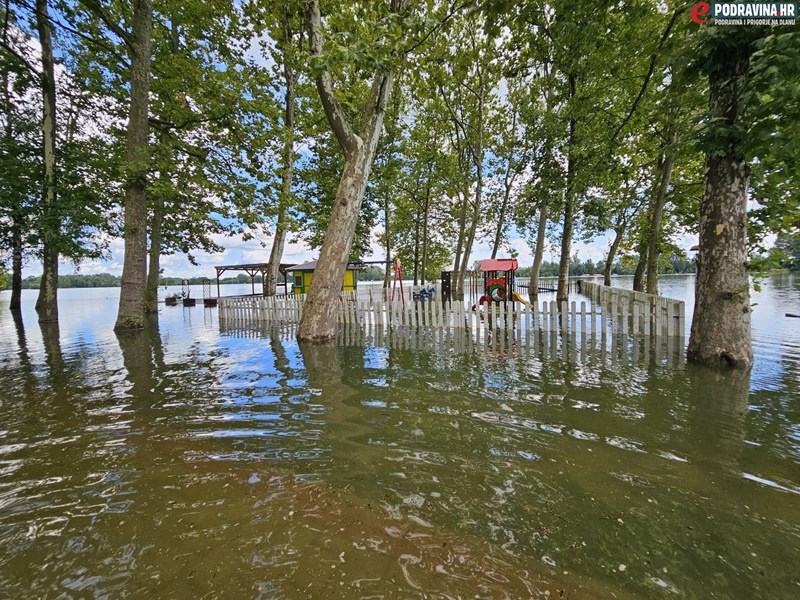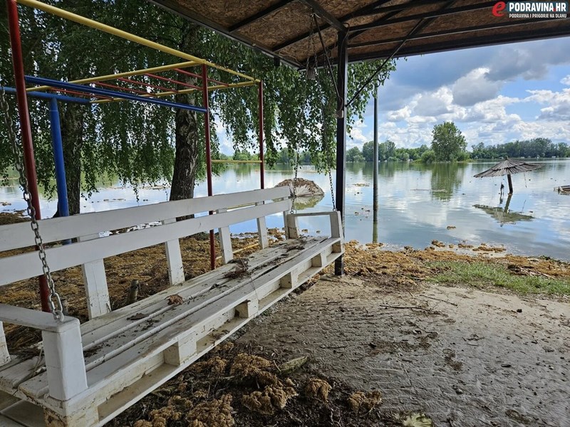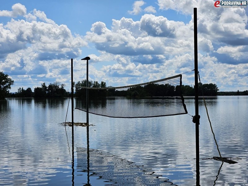 Pod vodom je i dalje dio Šoderice s desne strane od Ronilačkog kluba. Danas vode više nema ni na dijelu igrališta koje je jučer bilo poplavljeno. Na odbojkaškom terenu je vidljivo da se voda spustila za oko pola metra. No pod vodom je i dalje igralište kraj Plavog labuda.
