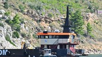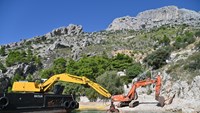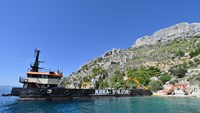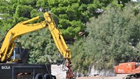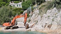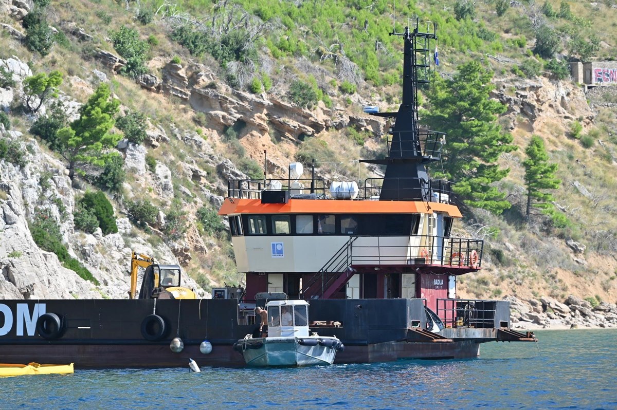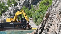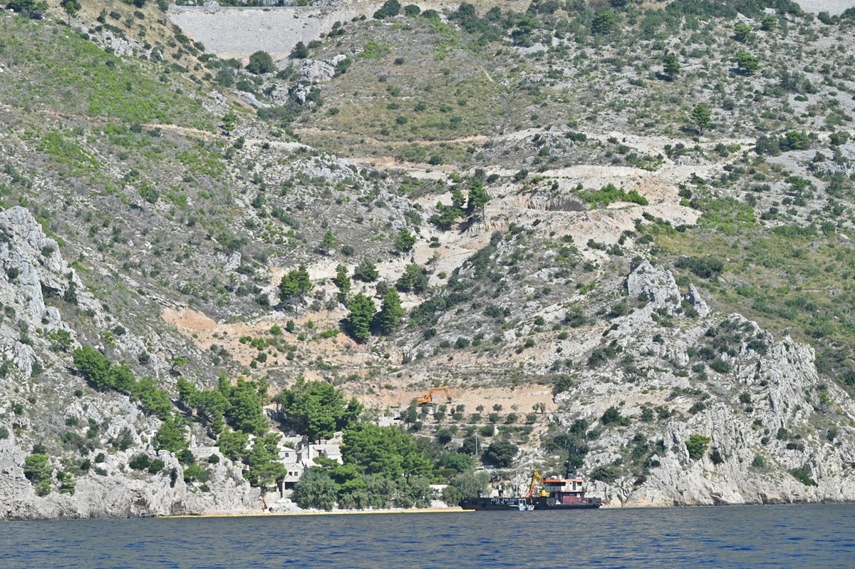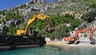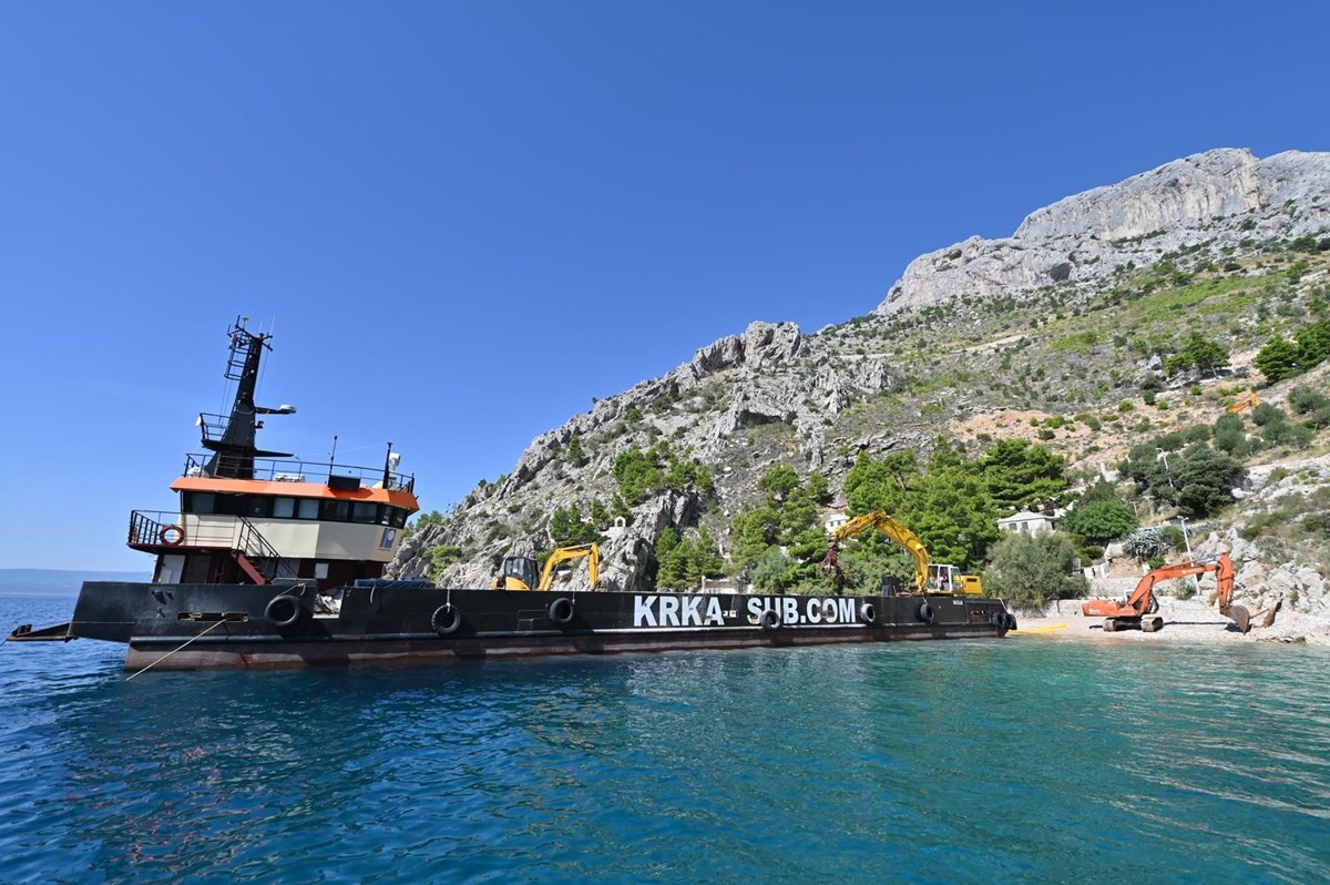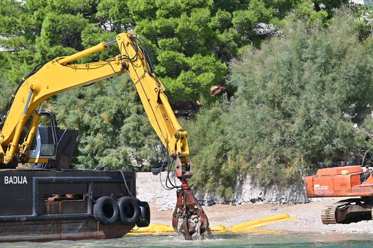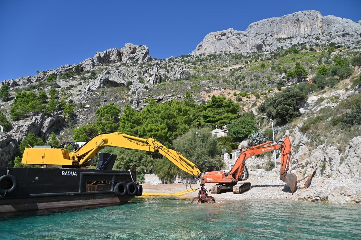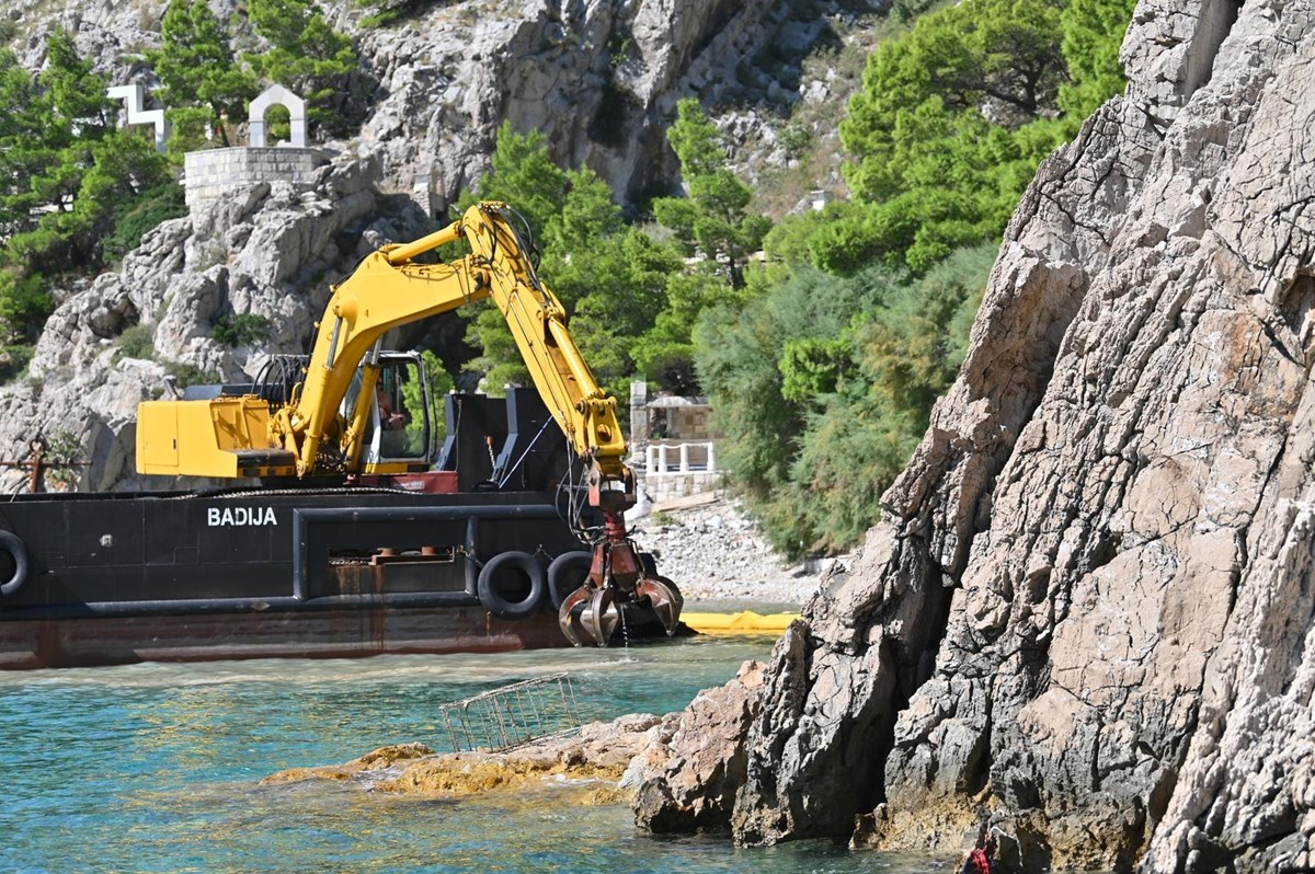 TRI MJESECA nakon početka rušenja ilegalno sagrađenih objekata u predivnoj uvali Vruja, između Brela i Omiša, bageri još uvijek rade na vraćanju ovog dijela obale u prvobitno stanje. Fotoreporter Pixsella snimio je jučer kako utovaruju građevinski otpad u brod.