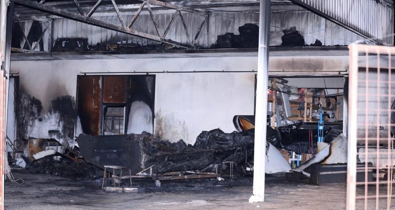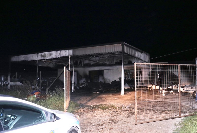 U požaru su izgorjele i nadstrešnica obližnjeg objekta, tri klizne stijene vrata te nekoliko automobilskih guma.
