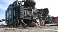 Sudar kamiona i auta kod Nove Gradiške, kamion se prevrnuo, rasula se piljevina